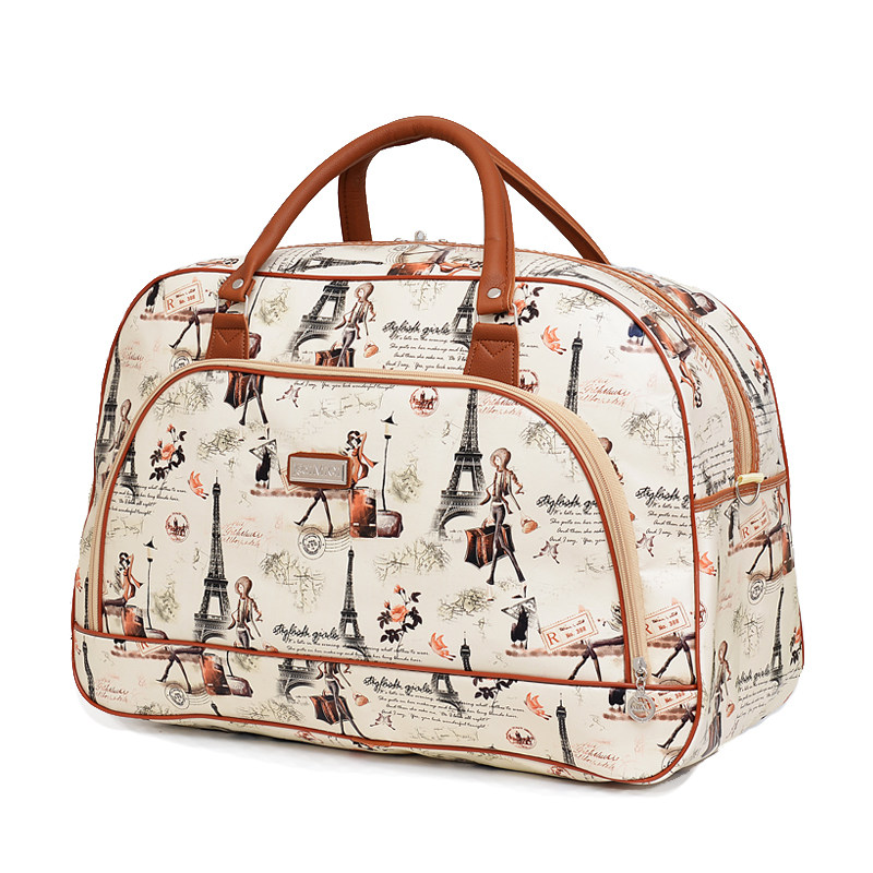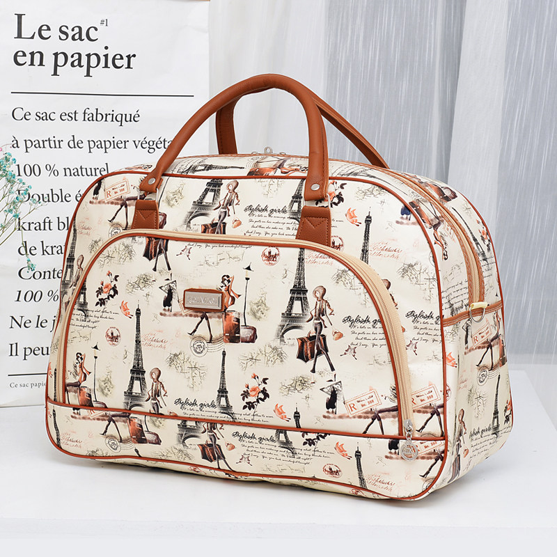 📚 大容量PU旅行包女手提韩版短途卡通可爱学生小行李包女防水旅游包