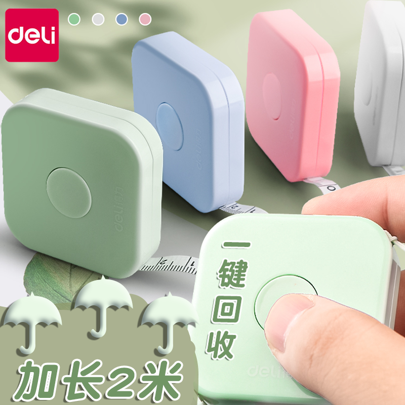 📚 得力迷你皮尺2米小卷尺1.5米量衣尺多功能居家测量尺子身高量三围腰围胸围量衣布尺家庭服装专用软皮尺便携式