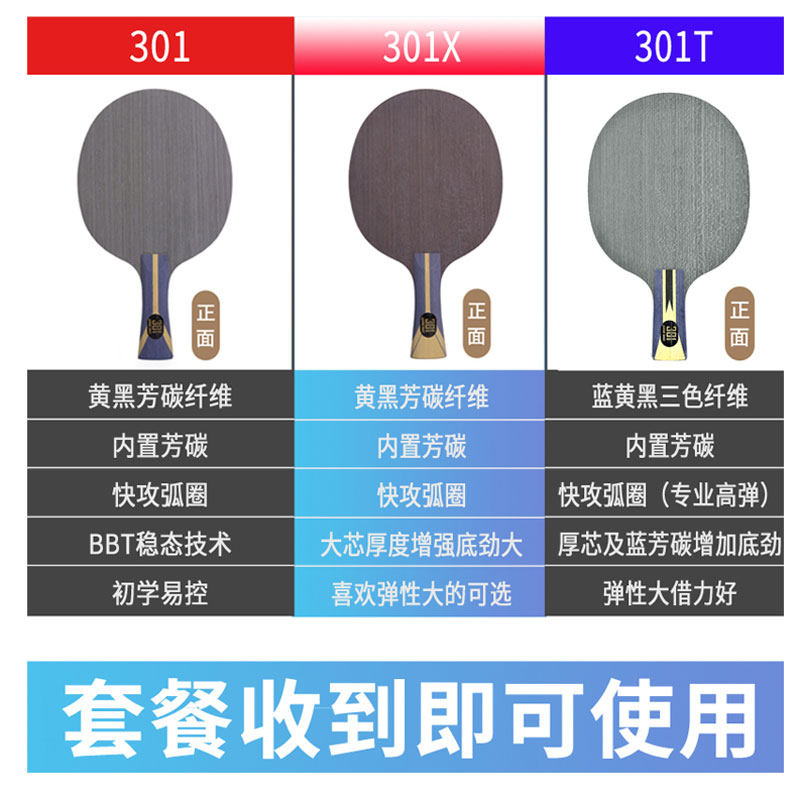 📚 红双喜乒乓球拍底板狂飚301T碳素7层301X专业级黄黑芳碳横板进攻