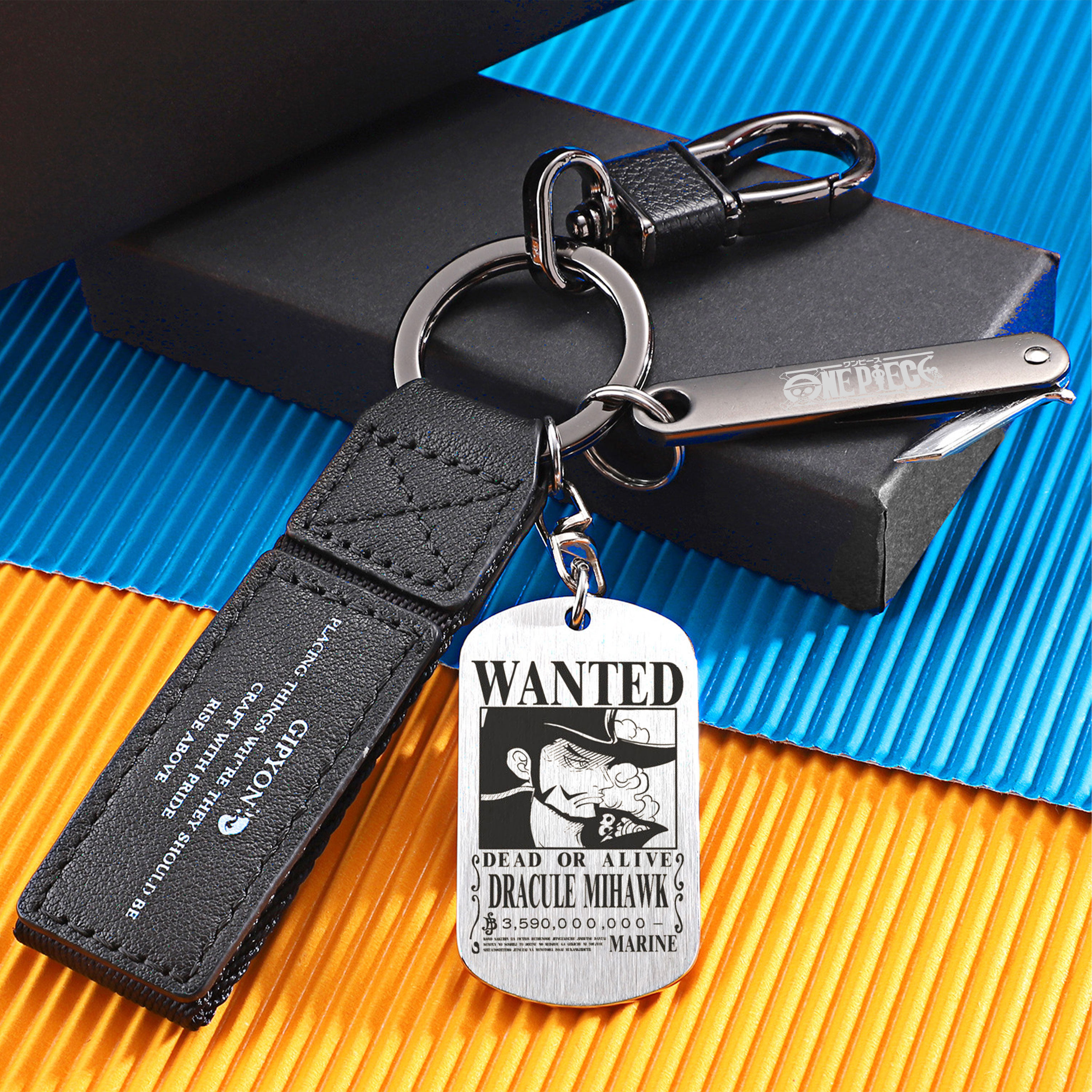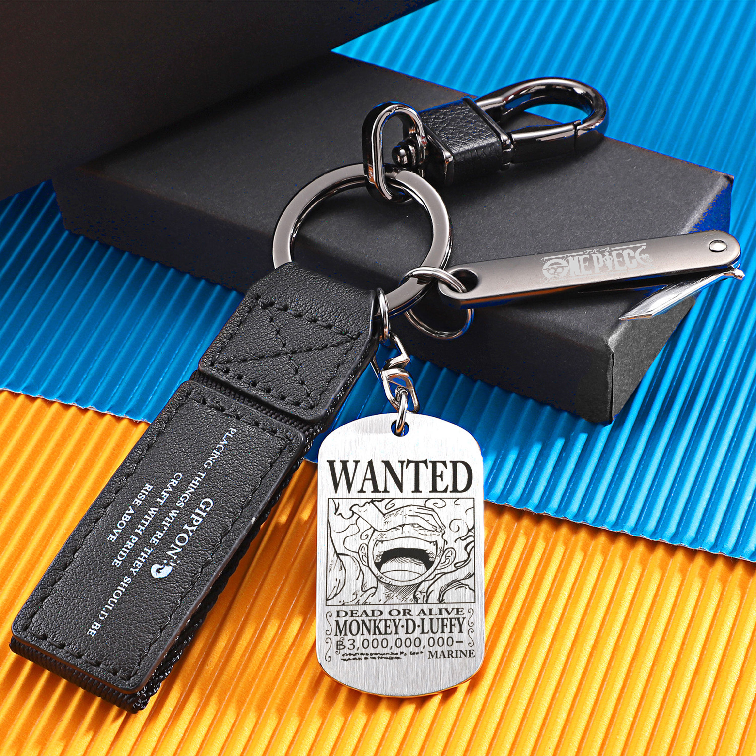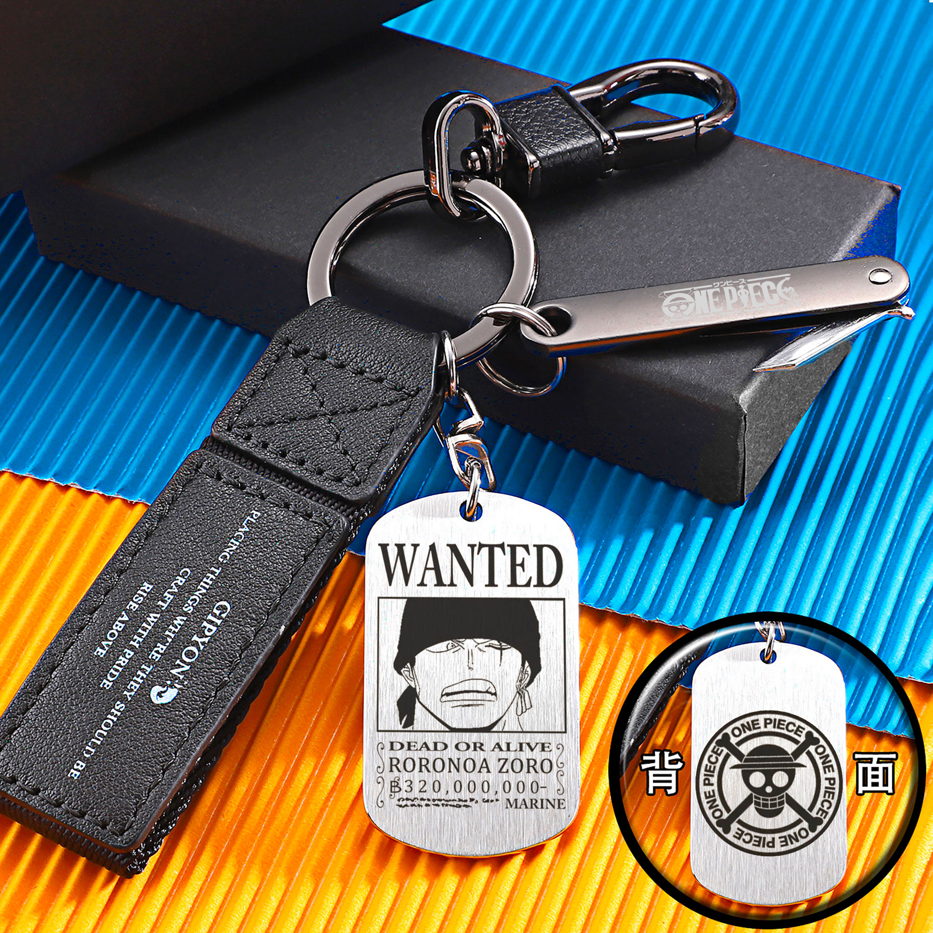 📚 海贼王周边路飞索隆艾斯悬赏通缉令钛钢军牌钥匙扣挂件男女车钥匙