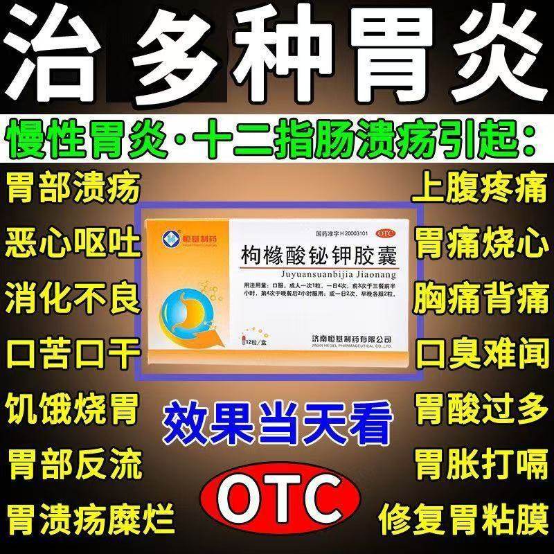 📚 胃药胃痛慢性胃炎胃酸过多反酸烧心乐枸橼酸铋钾胶囊12粒