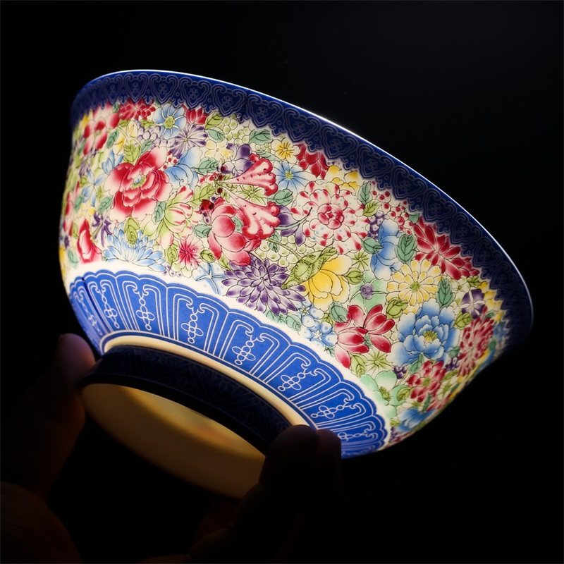 📚 碗家用大号面碗陶瓷碗个人专用汤碗高脚碗吃饭碗景德镇珐琅彩餐具