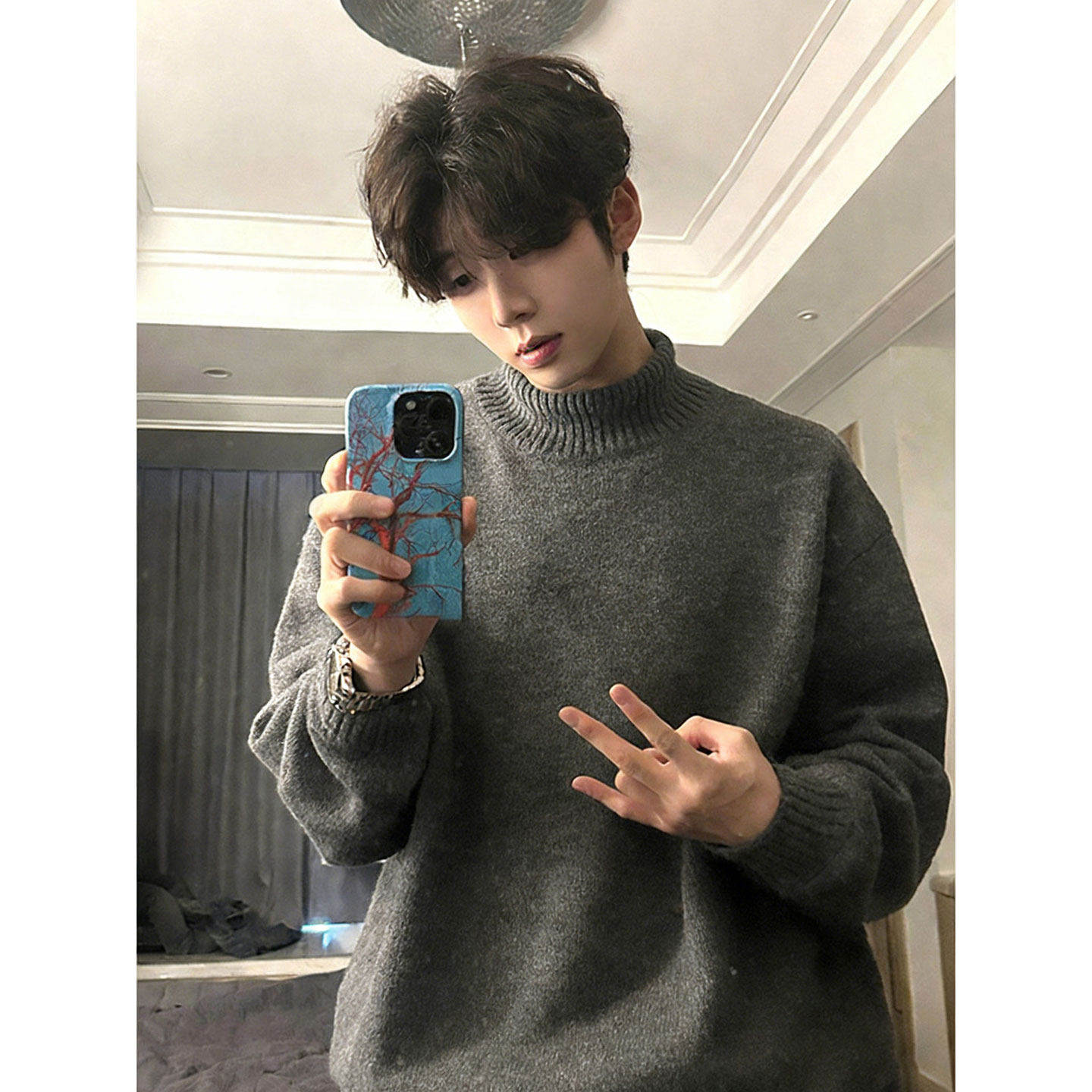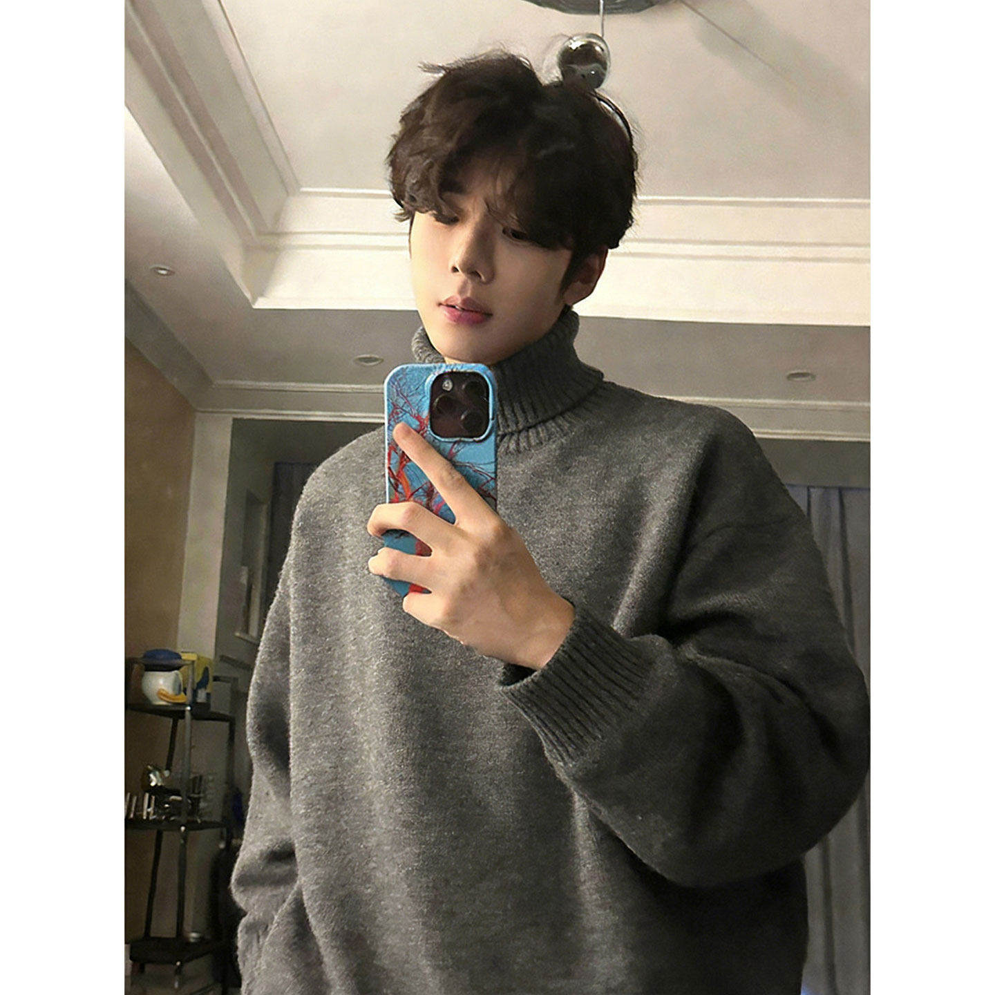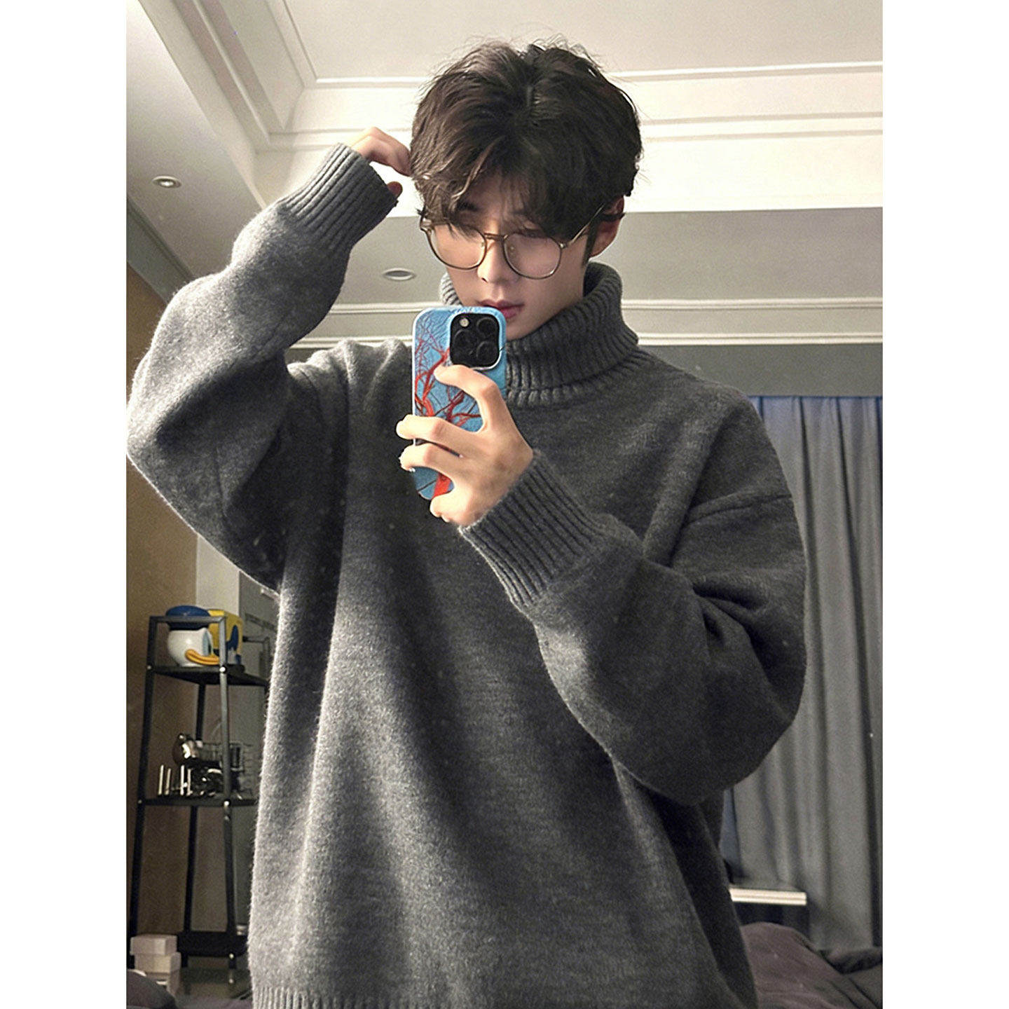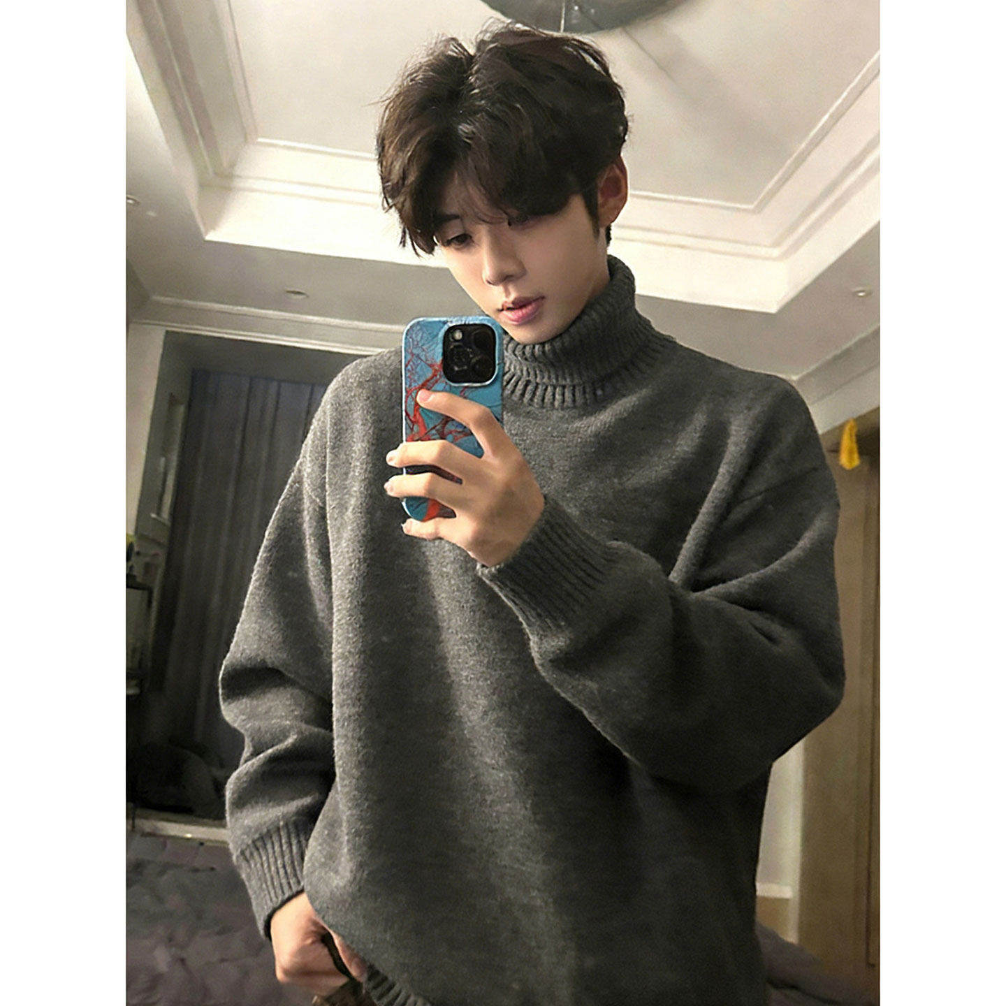 📚 深灰色高领加绒毛衣男生秋冬高级感针织内搭打底衫美式慵懒风外套