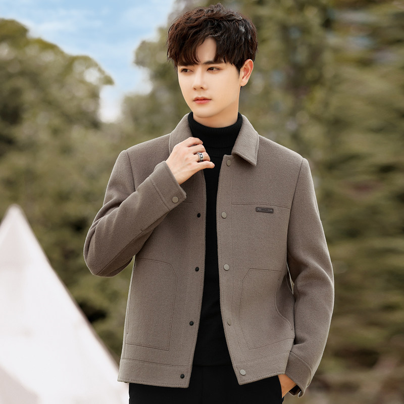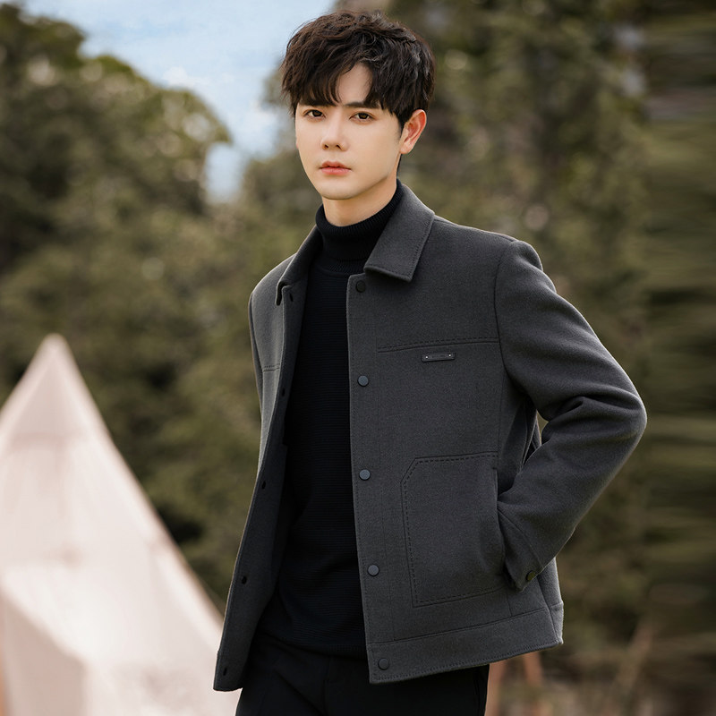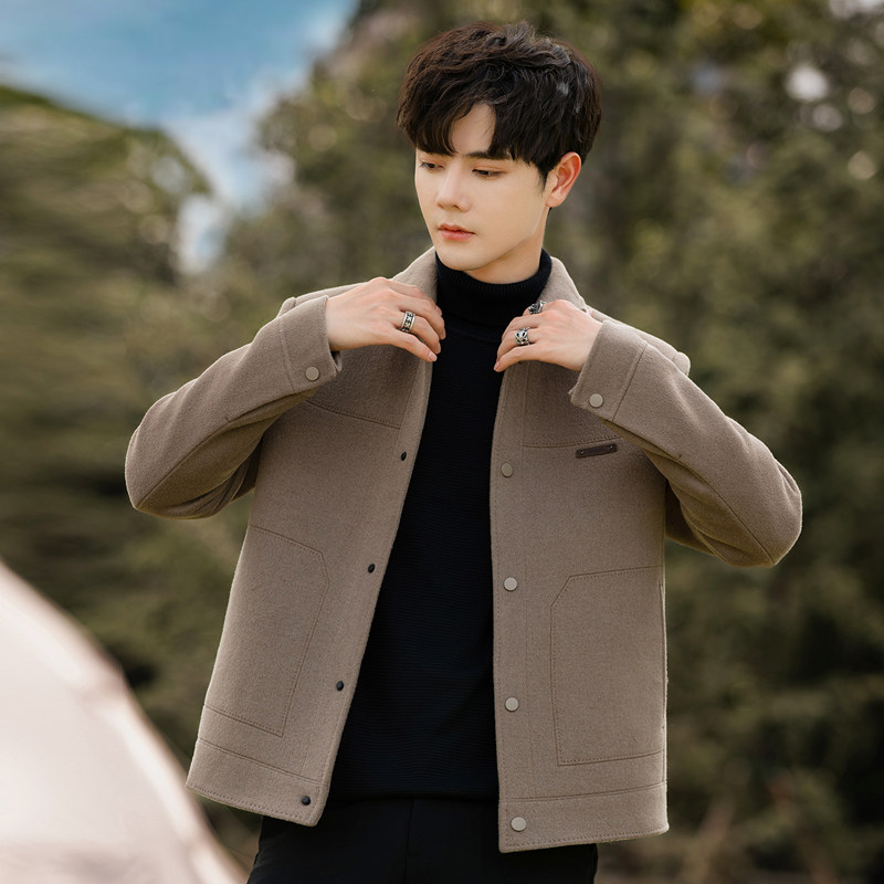 📚 翻领双面绒外套男士羊毛呢子大衣短款夹克男装秋冬季英伦风加厚潮
