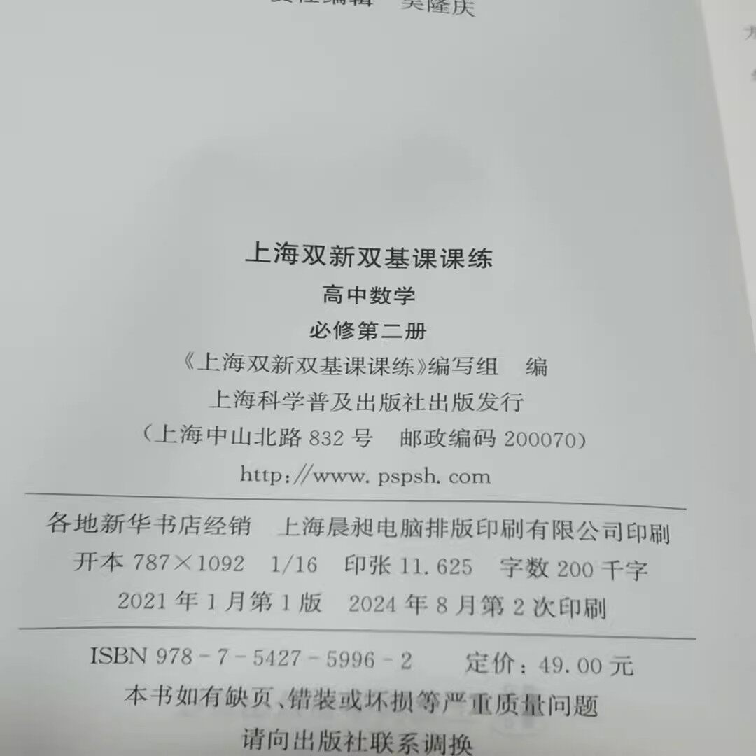 49¥ HU006 kVVCUNcGn0A¥ https://m.tb.cn/h.7wPns66 上海双新双基课课练 高中数学 必修第二册 高中数学 必修2第二册 高1下/高一年级第二学期 上海版新课改教材配套辅导同步练习 --------------------- 【原售价】39.2元 【现售价】39.2元。
