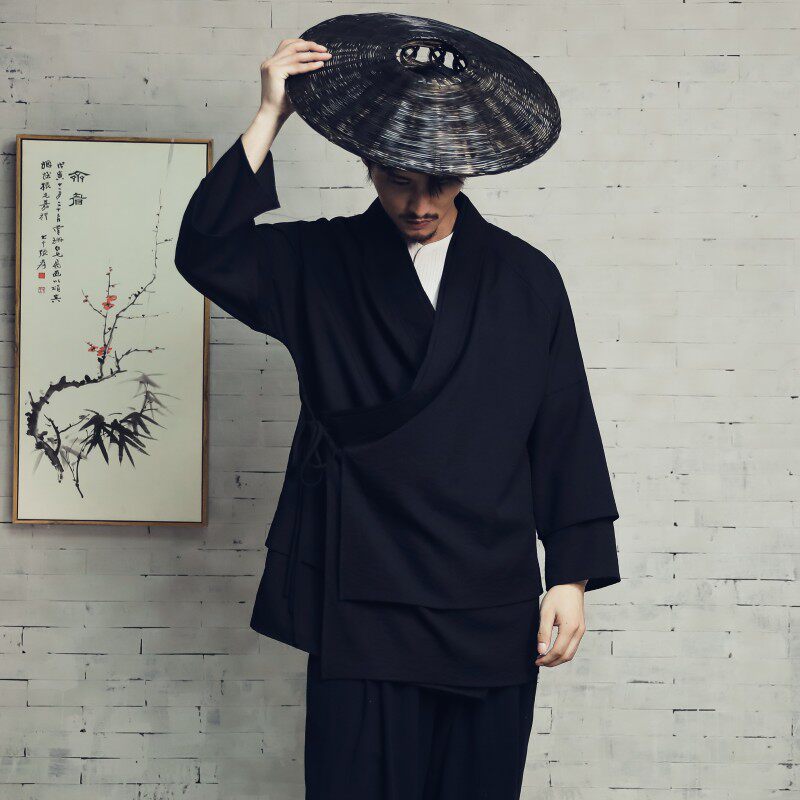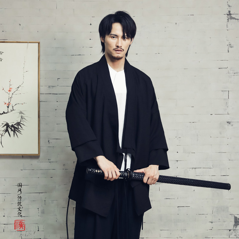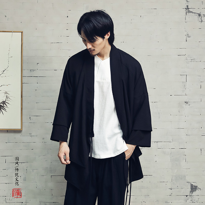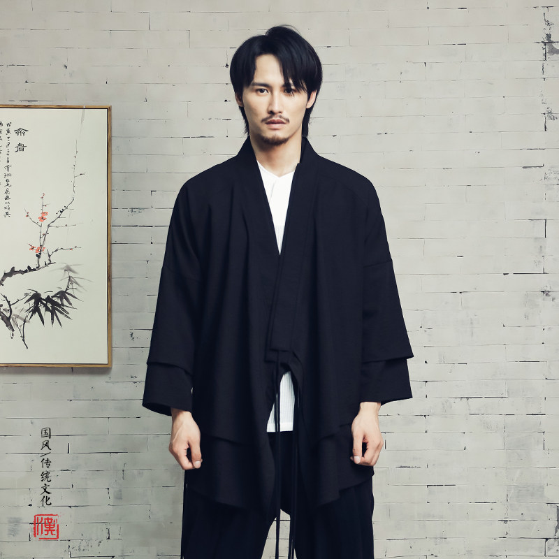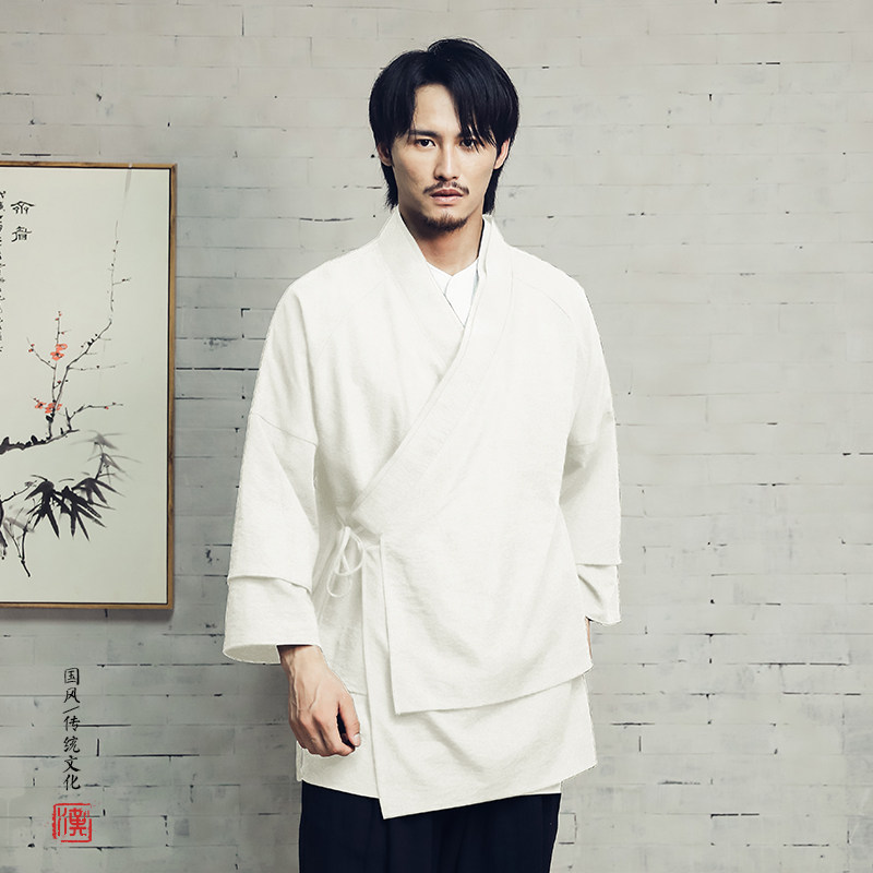 📚 中国风交领汉服男中长款古装侠客功夫右衽外套防皱茶服居士衫衣