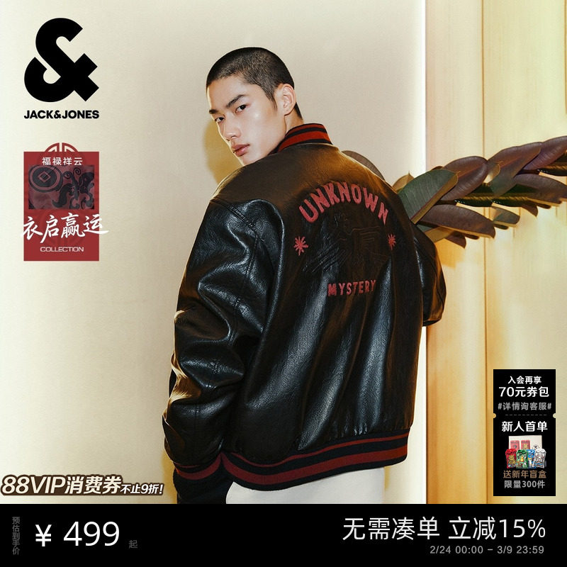 📚 【衣启赢运】杰克琼斯外套男款夹克新款钢印棒球领PU皮衣外套男装