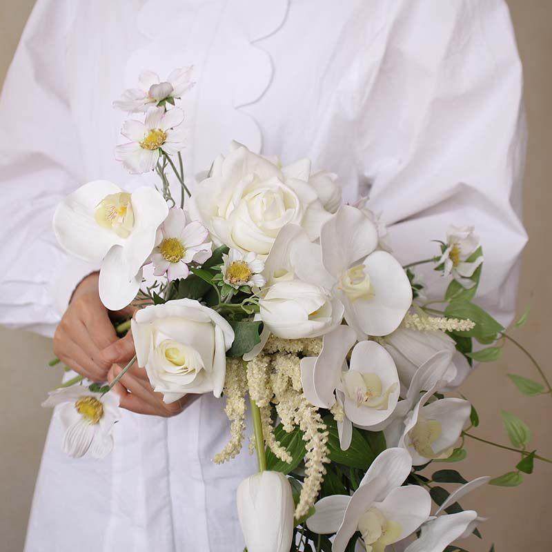 📸拍摄时,这款仿真花手捧花不仅实用,更能为新娘增添一份特别的氛围。无论是摆拍还是日常使用,都能展现出新娘的独特气质。