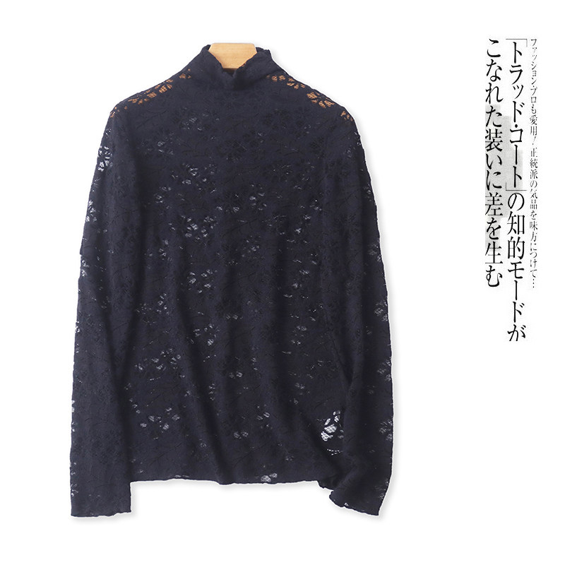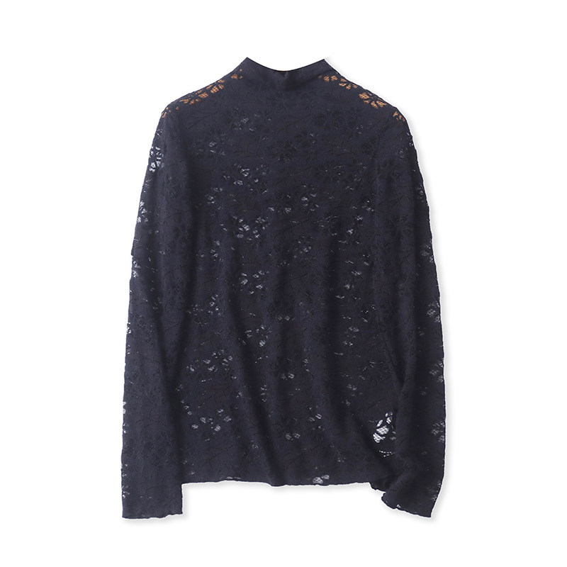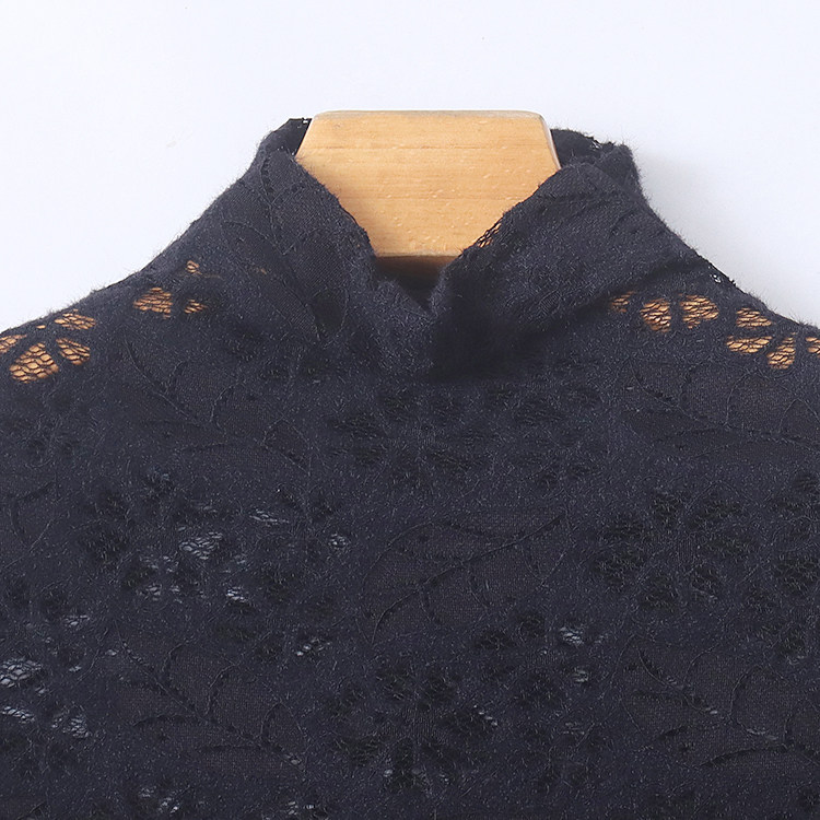 📚 植绒提花蕾丝打底衫 春秋新外贸女装时尚半高领拉链套头长袖30962