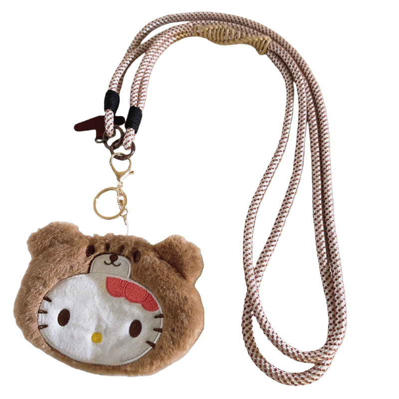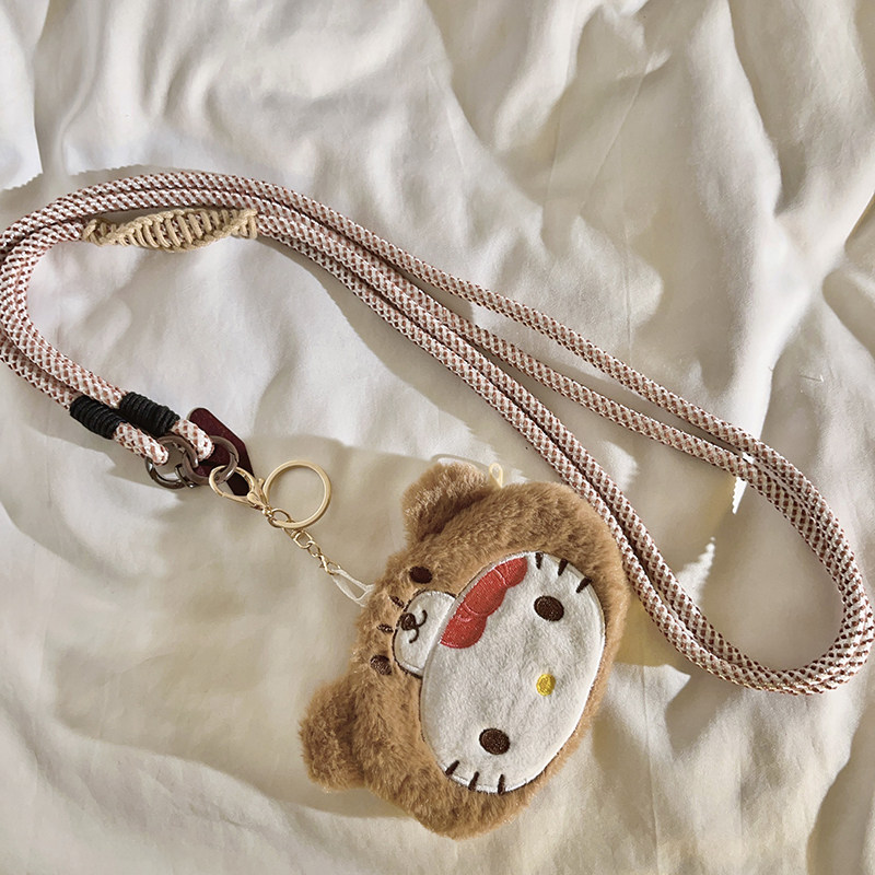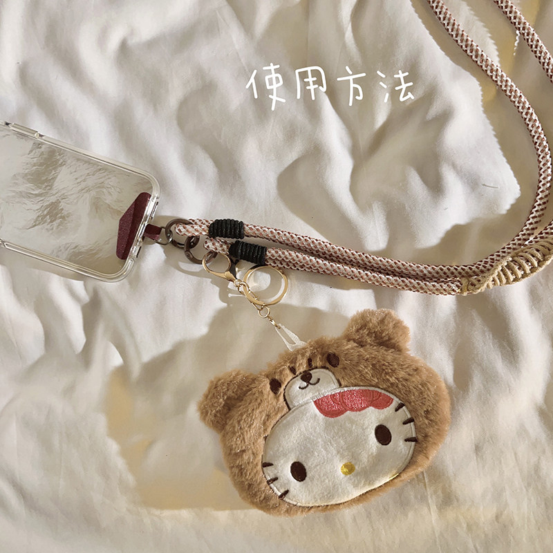 📚 动漫卡通毛绒棕色熊头KT猫零钱包斜跨长绳适用于手机壳挂件学生网红可爱女款收纳蓝牙耳机套钥匙户外ccd挂链