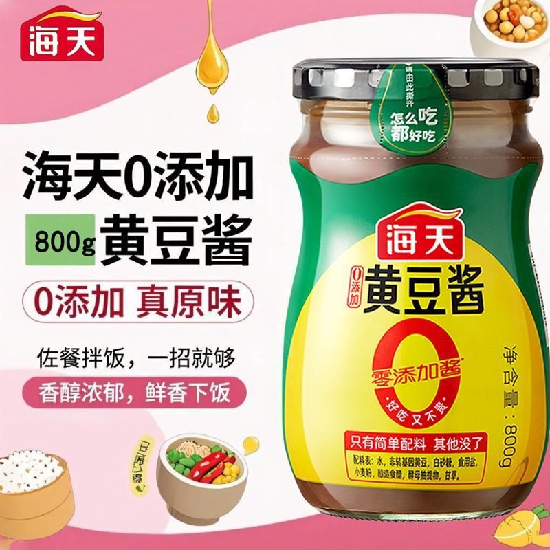 📚 海天0添加黄豆酱800g黄豆酿造拌面蘸酱焖炖酱厨房调味海天豆瓣酱