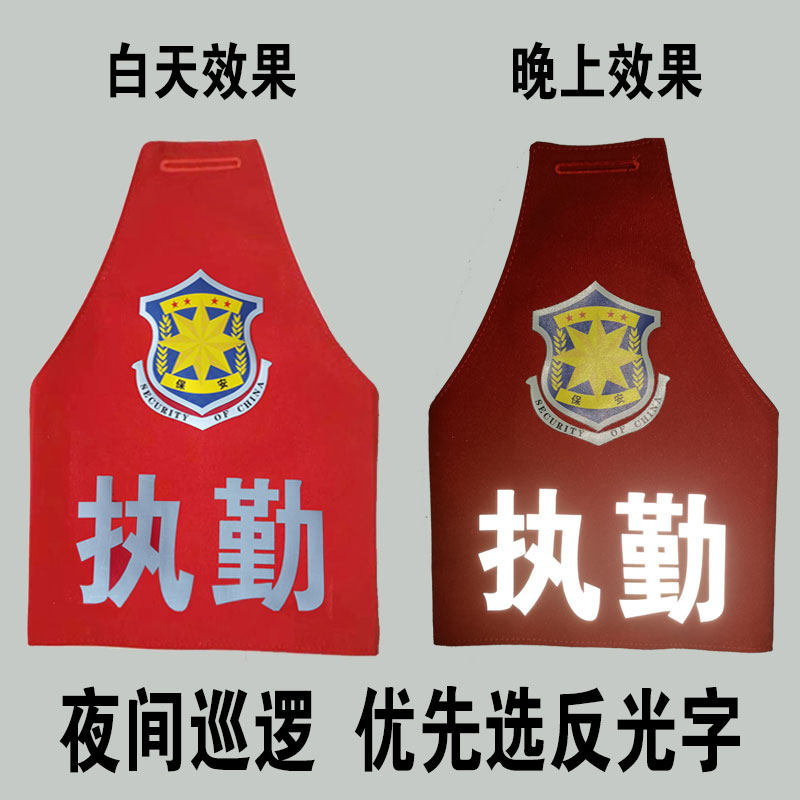 📚 定制三角反光保安执勒袖标定做物业治安巡逻队长消防员连肩红袖章
