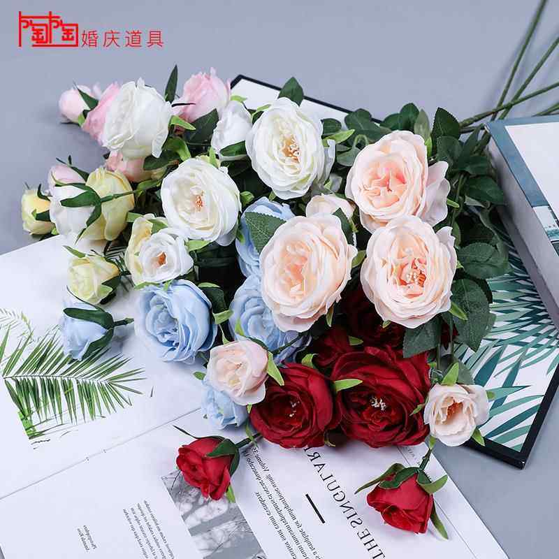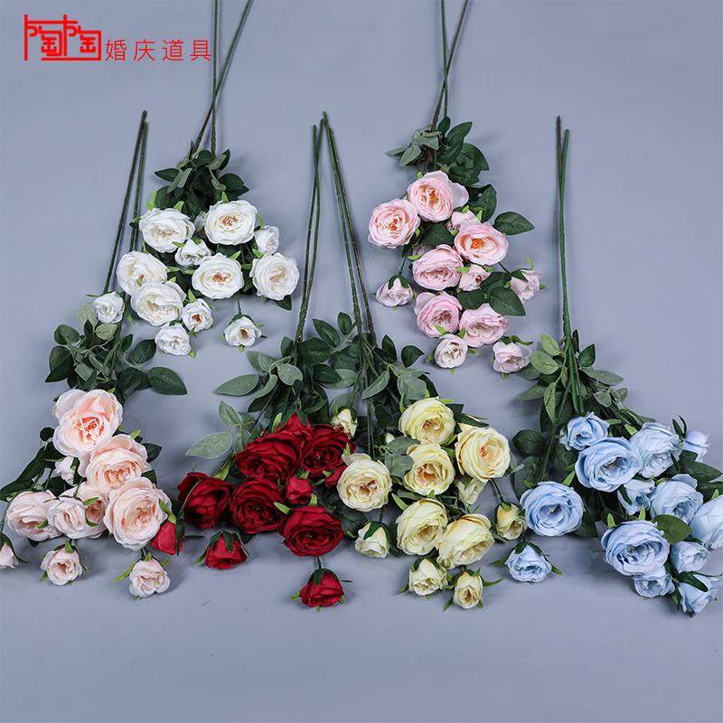 📚 仿真小茶梅婚庆绢花开心玫多头月季玫瑰野茶玫婚礼堂装饰路引插花