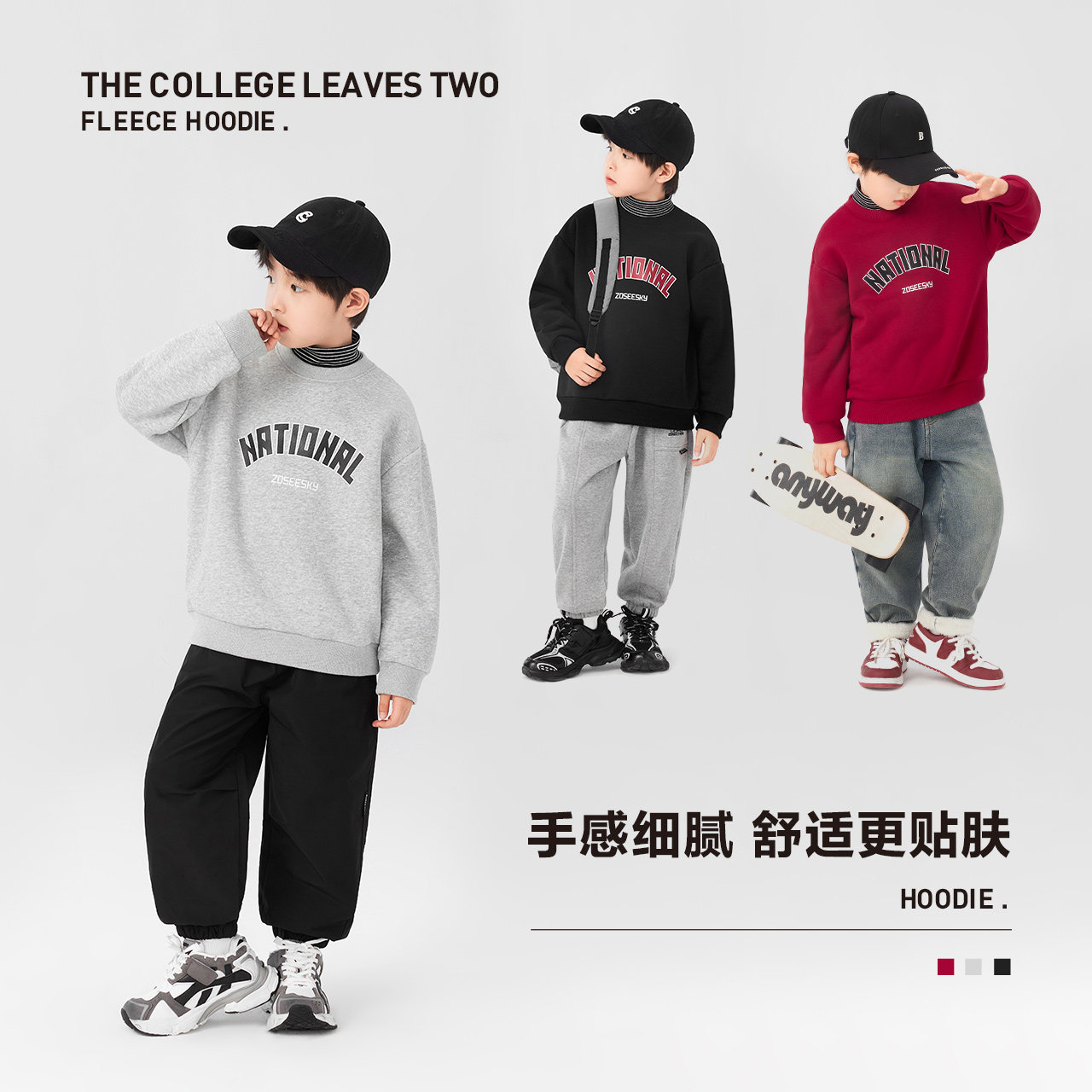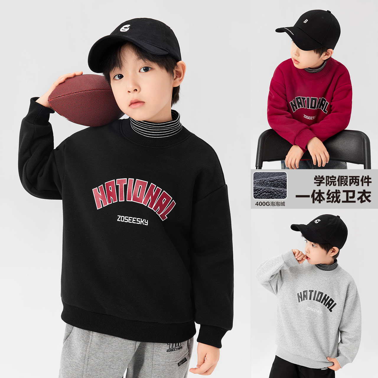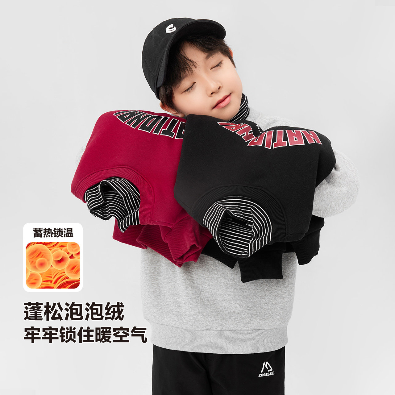 📚 左西男童加绒卫衣红色本命年拜年儿童冬季2025新款加厚半高领上衣