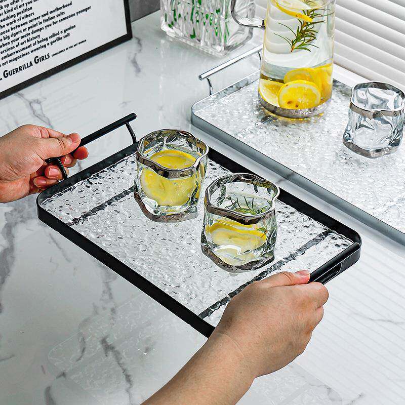 📚 家用商用端菜盘子长方形轻奢托盘新款水果盘点心铁盘茶水杯子茶盘