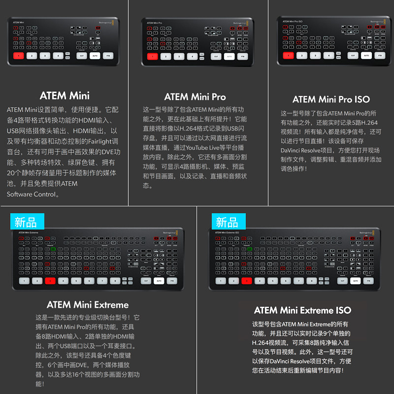 📚 BMD ATEM Mini Pro切换台HDMI4路Extreme8路多机位高清直播导播
