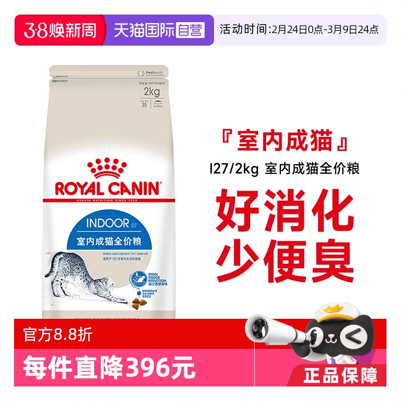 📚 【自营】法国皇家室内成猫全价粮I27/2KG理想体态营养通用猫主粮