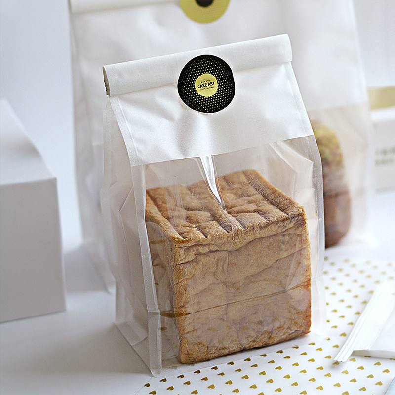 📚 450g面包袋卷边铁丝密封棉纸立方吐司袋八边封脆脆棒自封防油纸袋