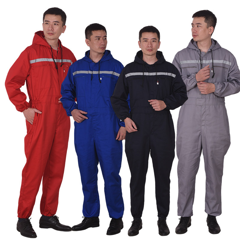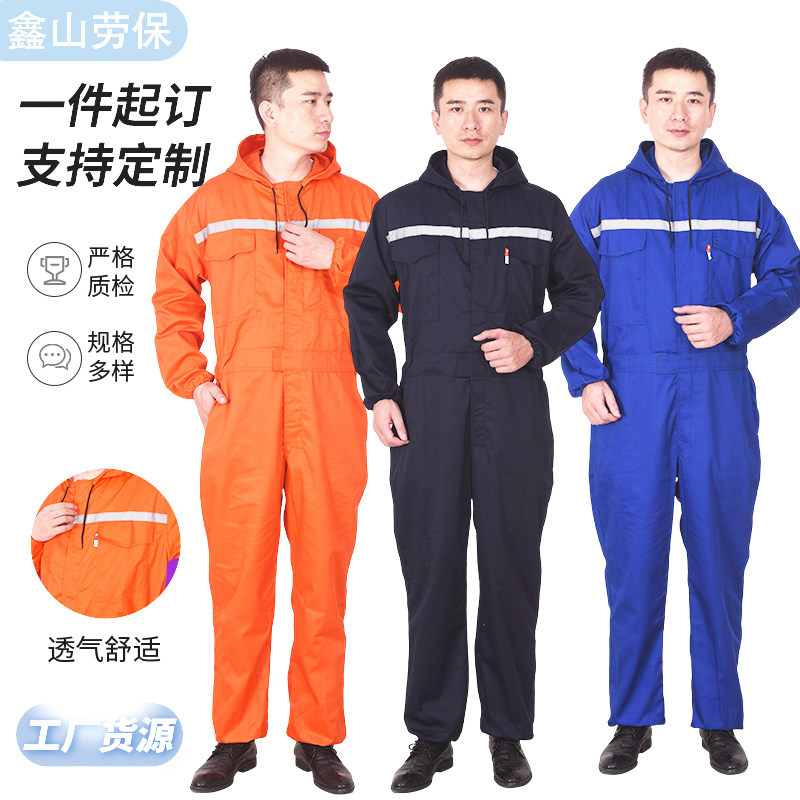 📚 涤棉防静电连体工作服男反光条汽修船员防尘服一体防护劳保服定制