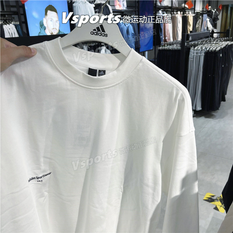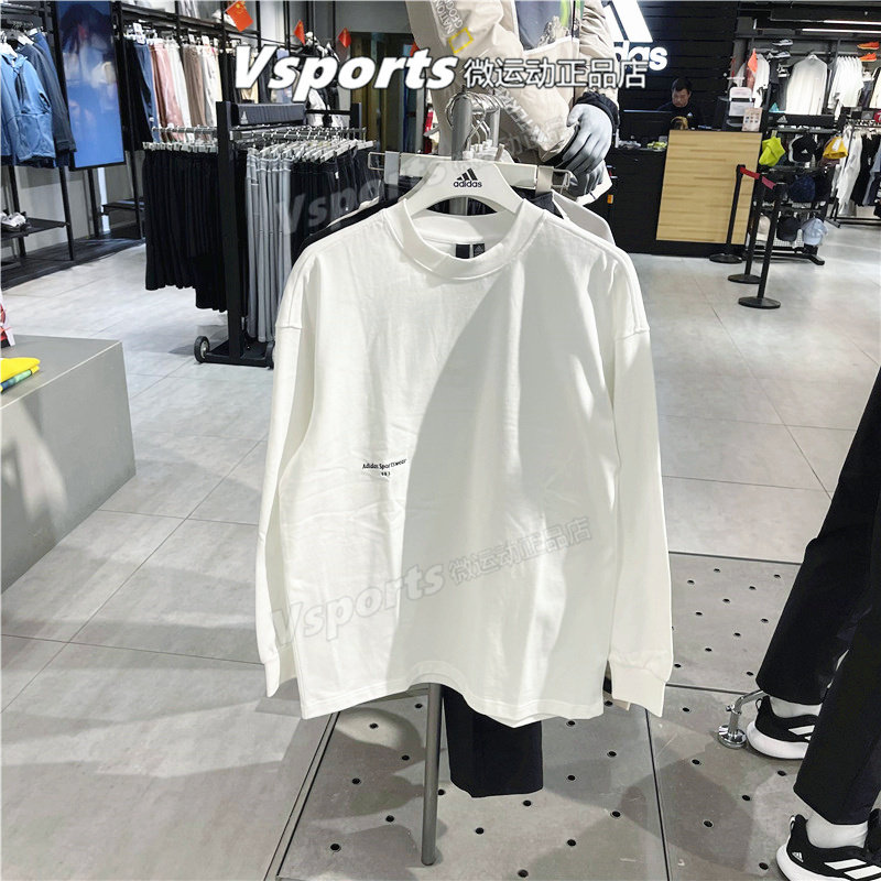 📚 阿迪达斯卫衣男2023秋季运动休闲宽松打底白色圆领长袖t恤 IZ1595