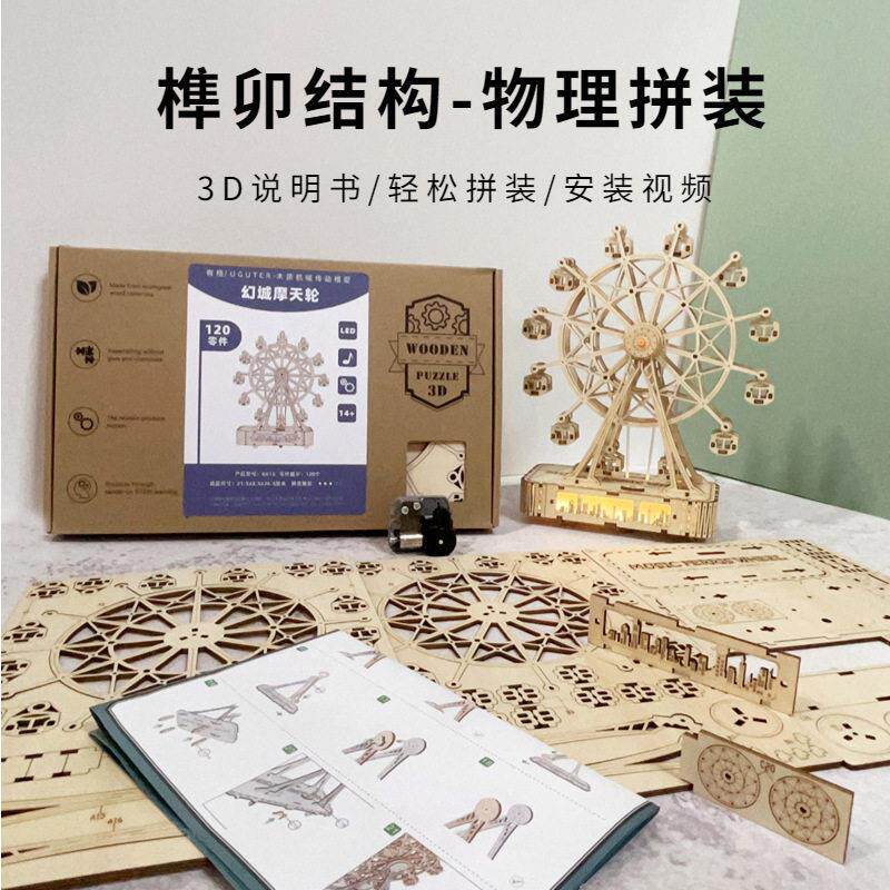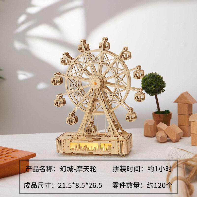 📚 摩天轮拼图3d立体积木模型儿童玩具摆件八音盒旋转diy手工送礼物