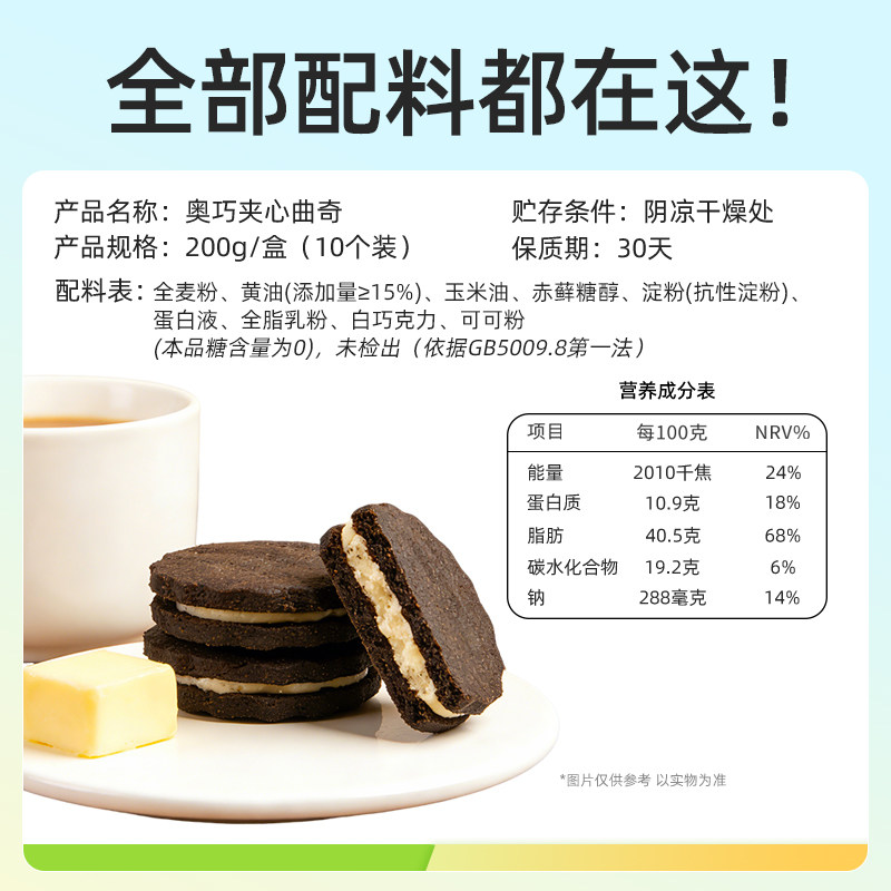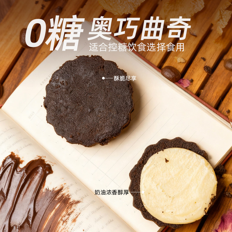 📚 糖学友0糖奥巧夹心曲奇干饼黄油0反式奥利糕点休闲解馋生酮零食品