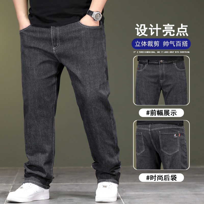 📚 春夏季新款男士牛仔裤宽松直筒加肥加大码高腰柔软弹力胖子休闲