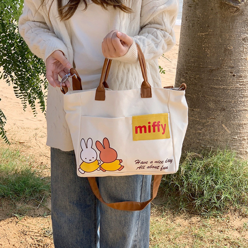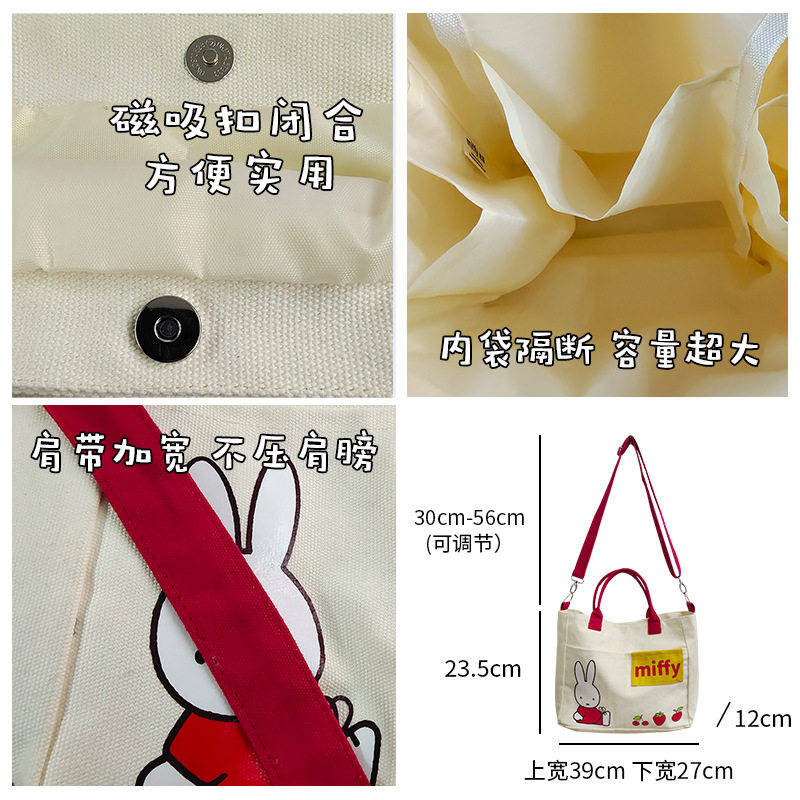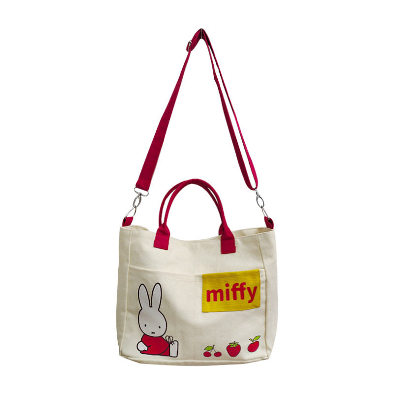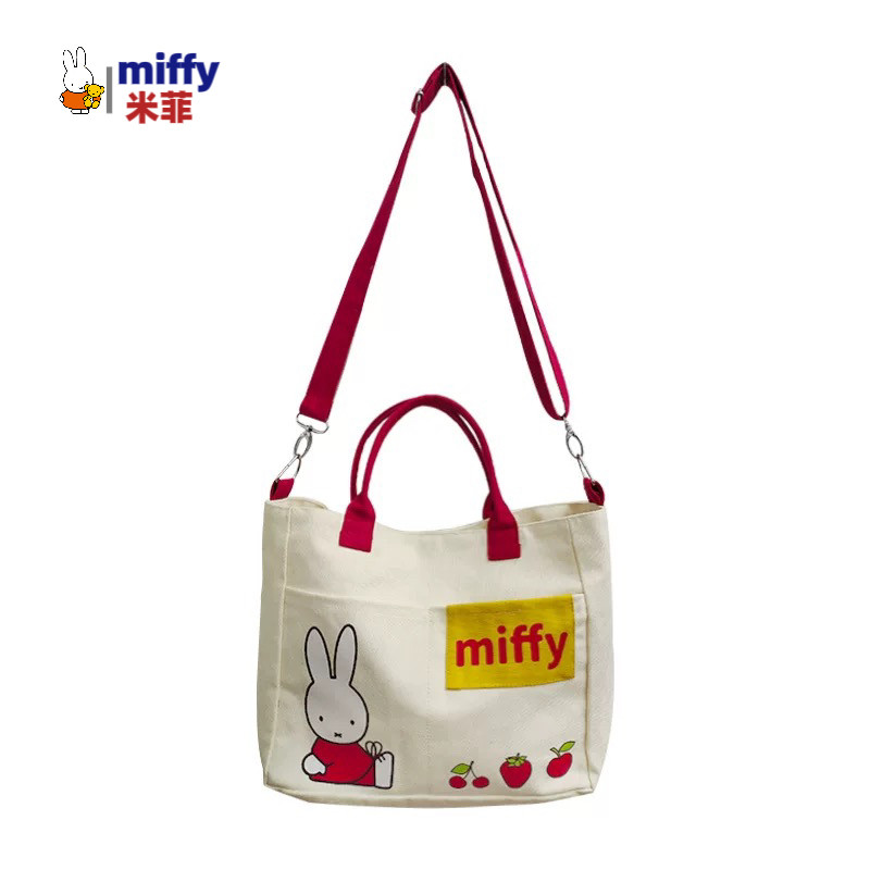 📚 MIFFY米菲兔草莓日系大容量帆布包手提斜挎拼色多功能两用包包