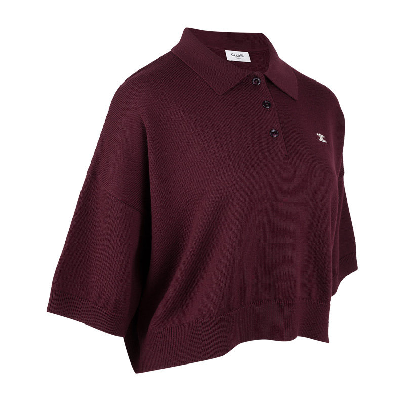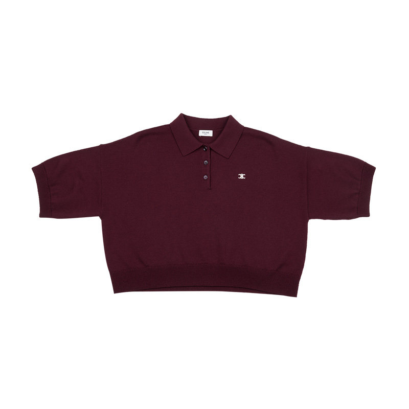 📚 CELINE赛琳女经典纯色纽扣短款落肩短袖Polo衫女士春夏新款XY推广
