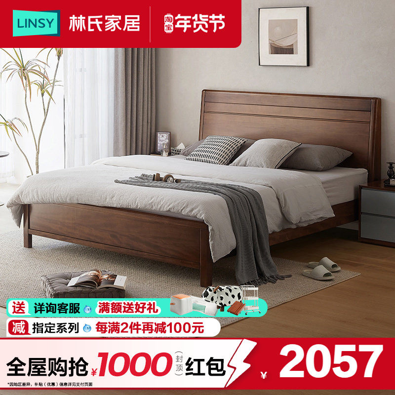 #林氏家居 #北欧简约 #实木框架床 #小户型 #双人床 #优惠活动 #家居好物