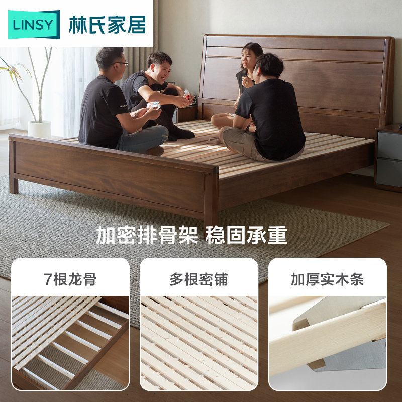 💥种草!林氏家居北欧简约实木框架床,主卧小户型超值选择💖