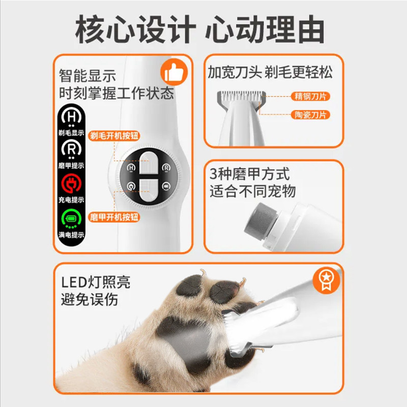 📚 宠物狗狗剃毛器猫咪剃脚毛专用电推剪狗毛电动磨甲器二合一指甲剪