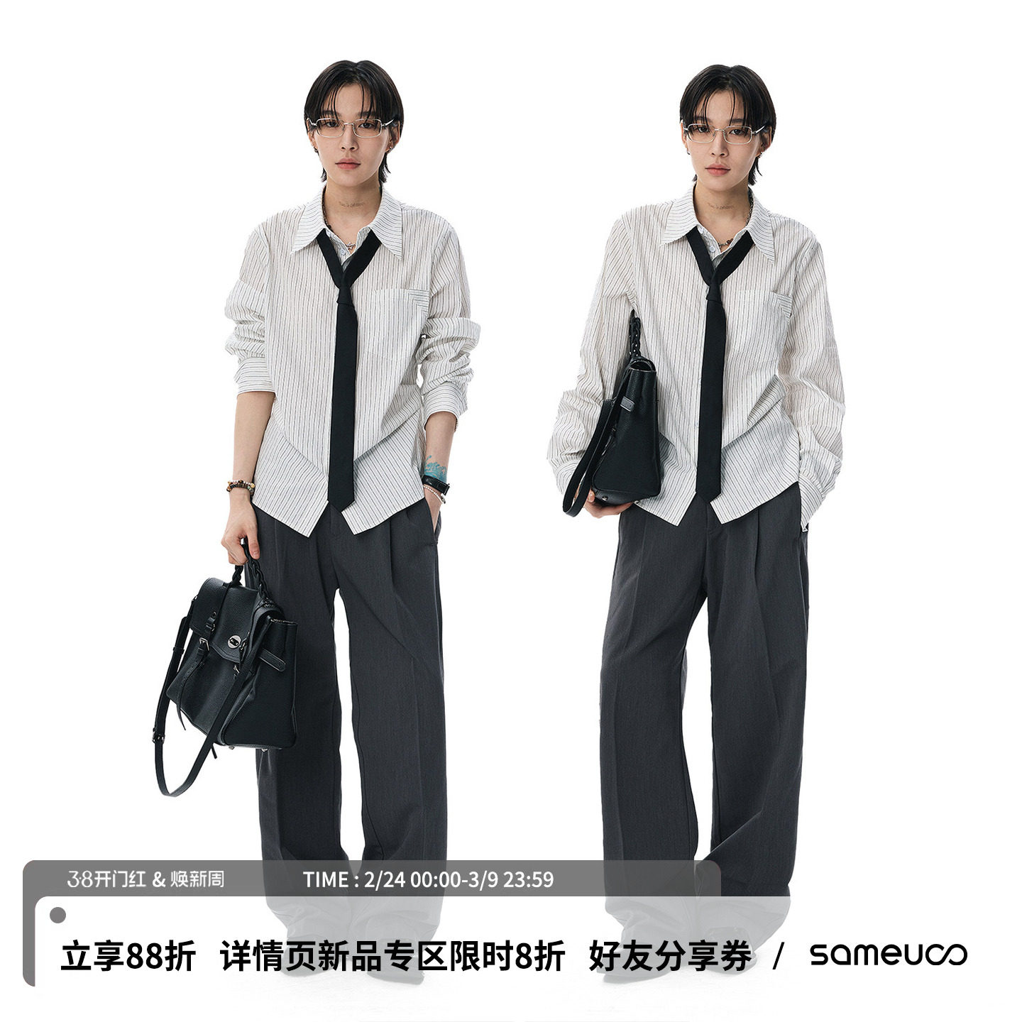 📚 【李维嘉同款】散养文化「银映」抽褶收腰中性风条纹长袖衬衫