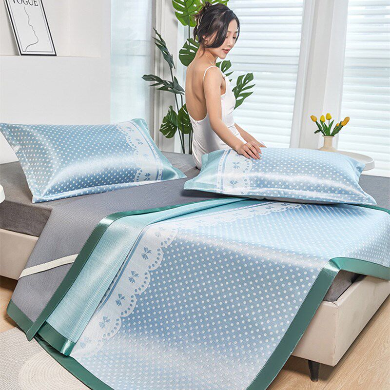 📚 夏季凉席冰丝席可机洗水洗三件套夏天冰凉席家用学生宿舍冰丝凉席