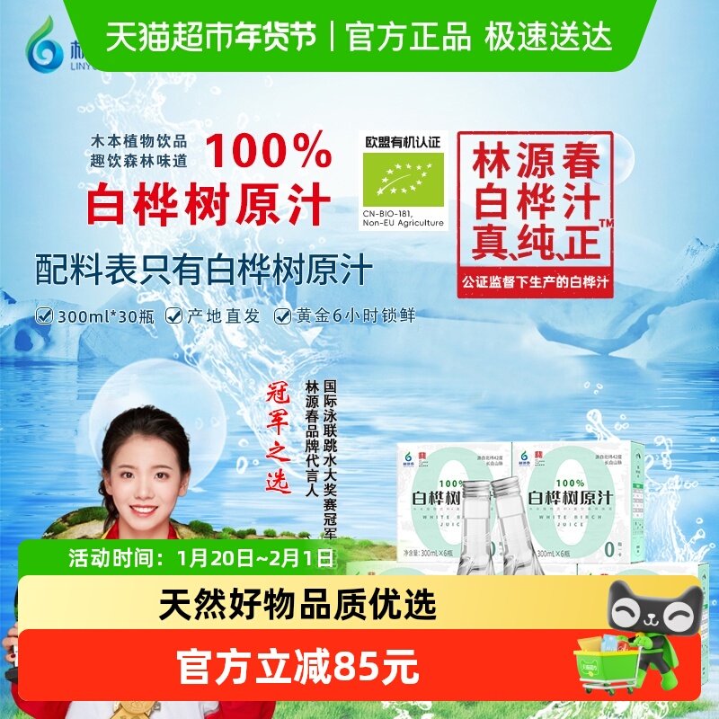 📚 林源春长白山100%白桦树汁300mlx30瓶纯天然5箱实惠装