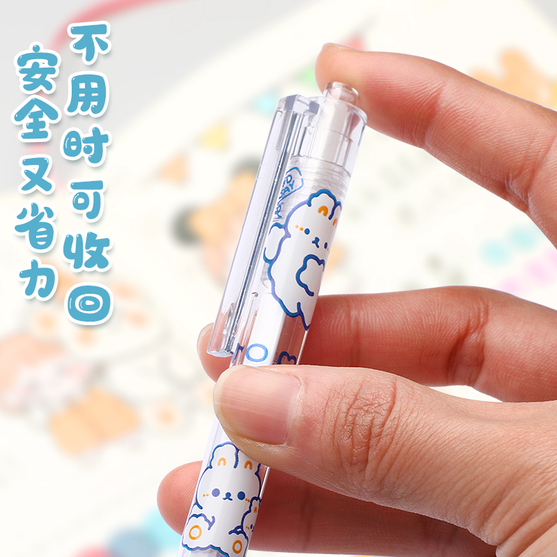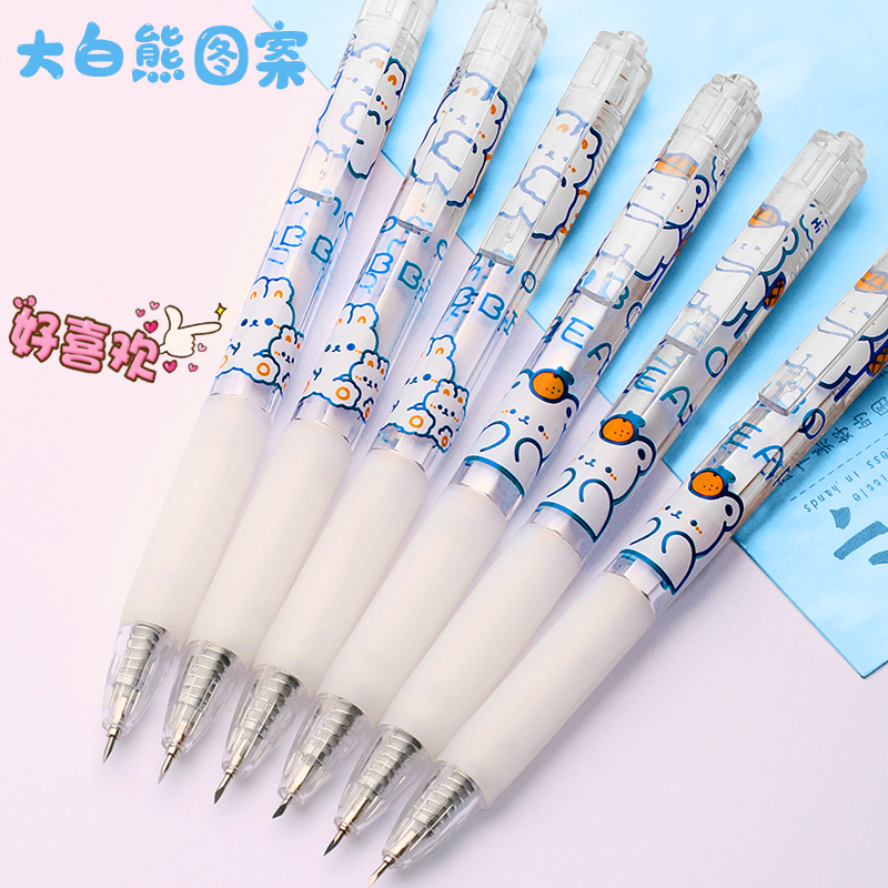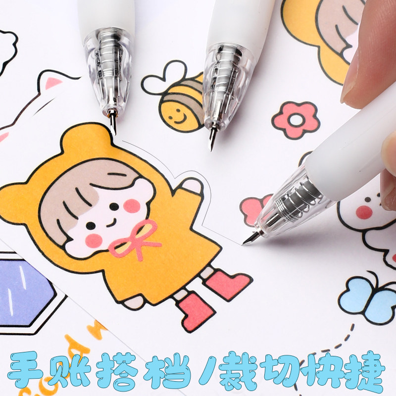 📚 高颜值按动刻笔刀可爱萌少女心ins风刀笔手账裁纸刻刀手帐笔形小刀头小白熊学生手杖贴纸刻刀替换芯工具套装