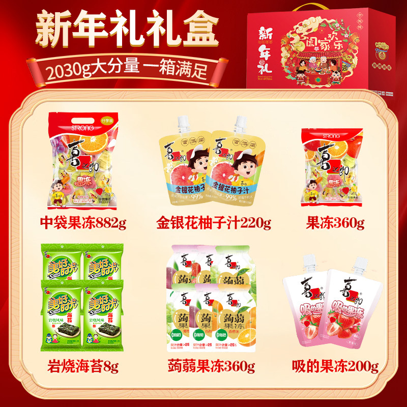 📚 喜之郎新年礼盒1998克70小件海苔果冻零食送礼年货春节日大礼包