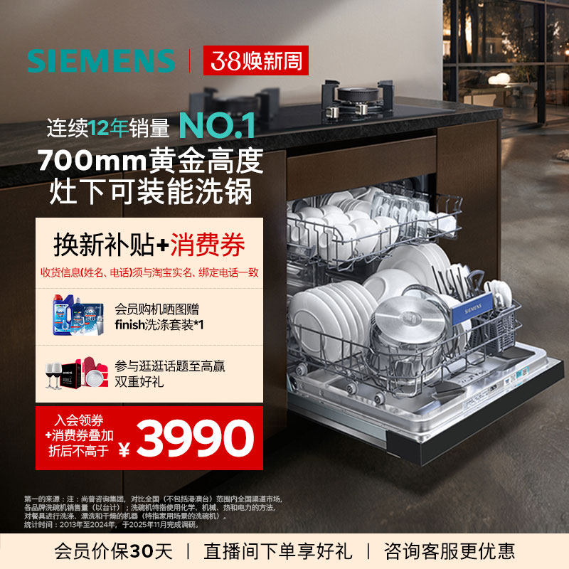 💥种草!西门子14套嵌入式灶下洗碗机,小厨房的神器,券后仅9390!