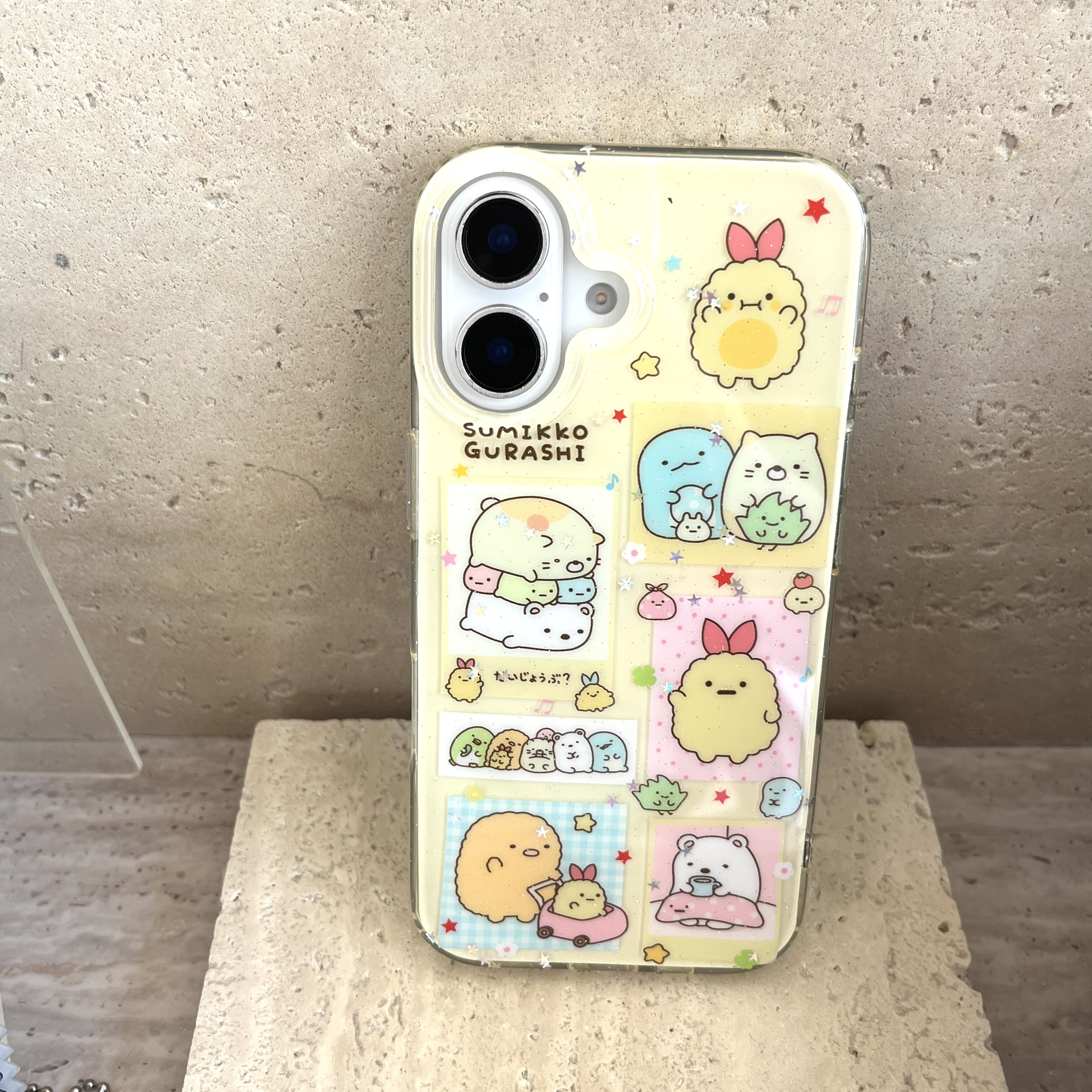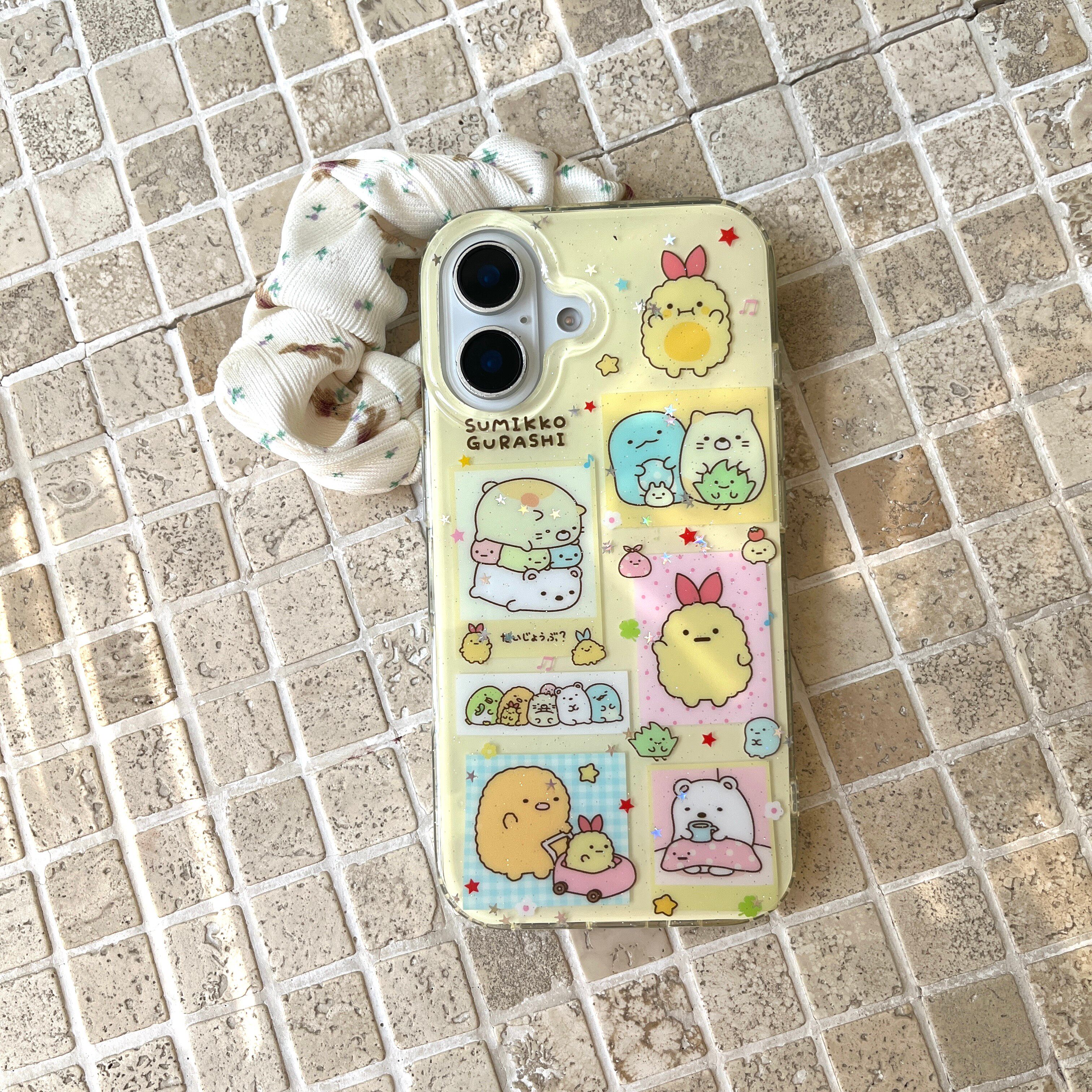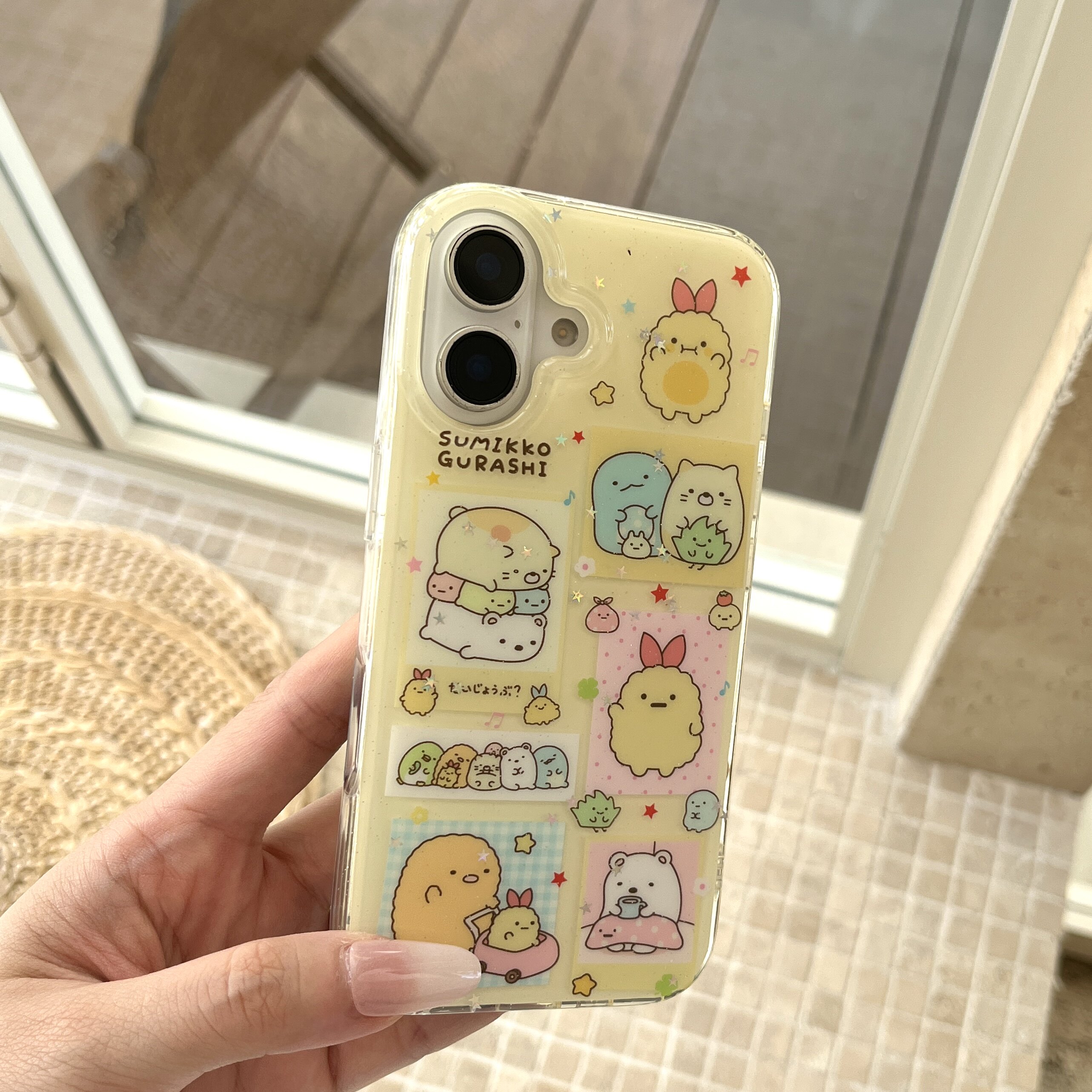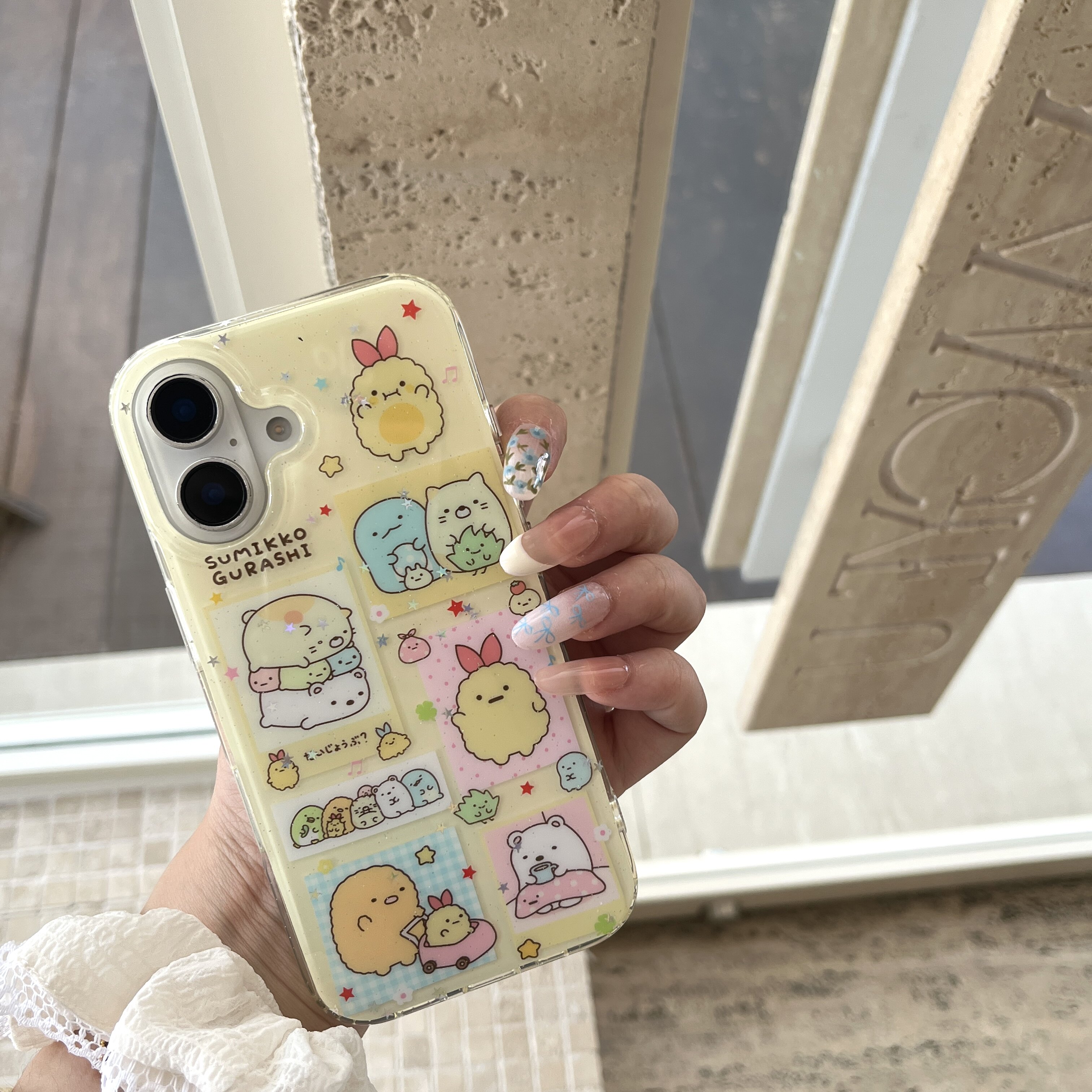 📚 IMD闪粉卡通可爱奶黄色角落生物手机壳适用iphone16promax大孔防摔苹果15趣味14亮面13女生小众日系萌系ins风