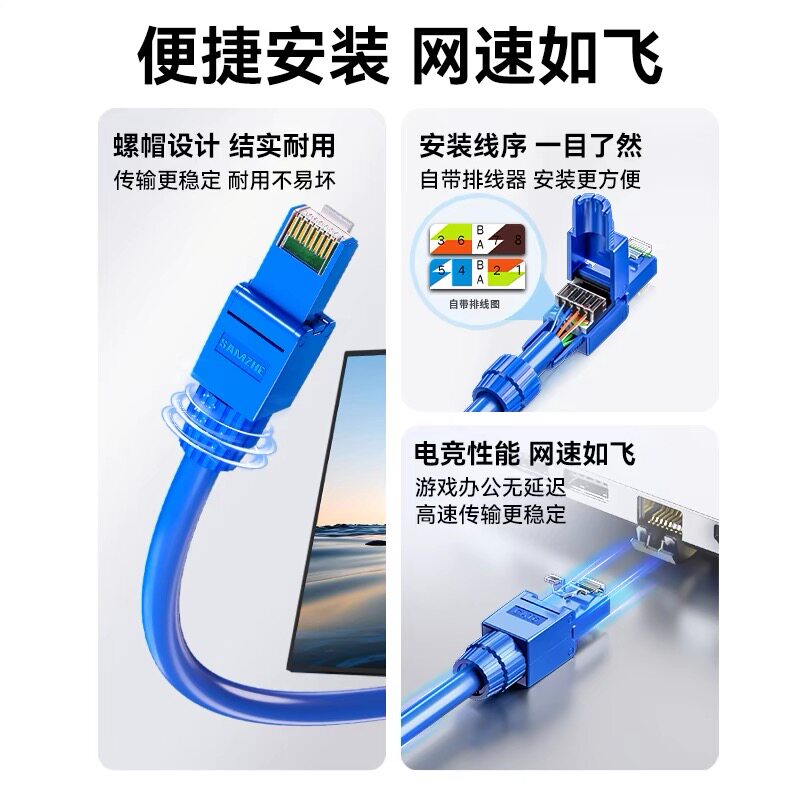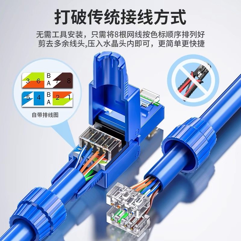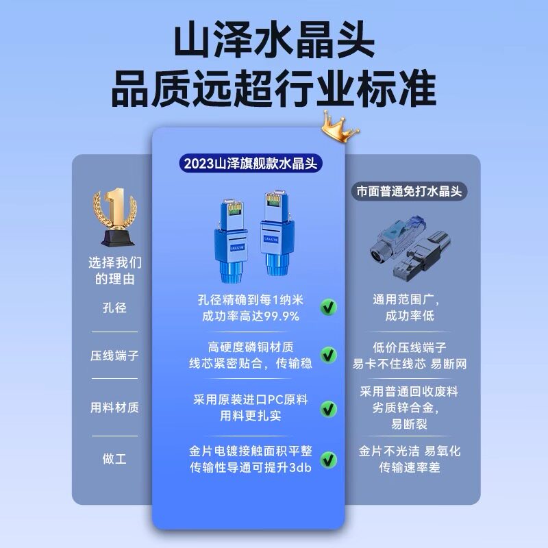📚 山泽免压水晶头超五5六6七7类8八千兆网络免工具压打网线家用接头