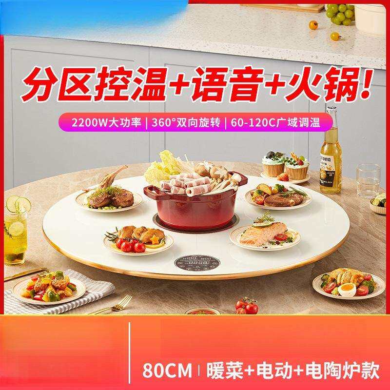 📚 分区语音火锅圆形暖菜板饭菜保温板转盘家用多功能加热垫