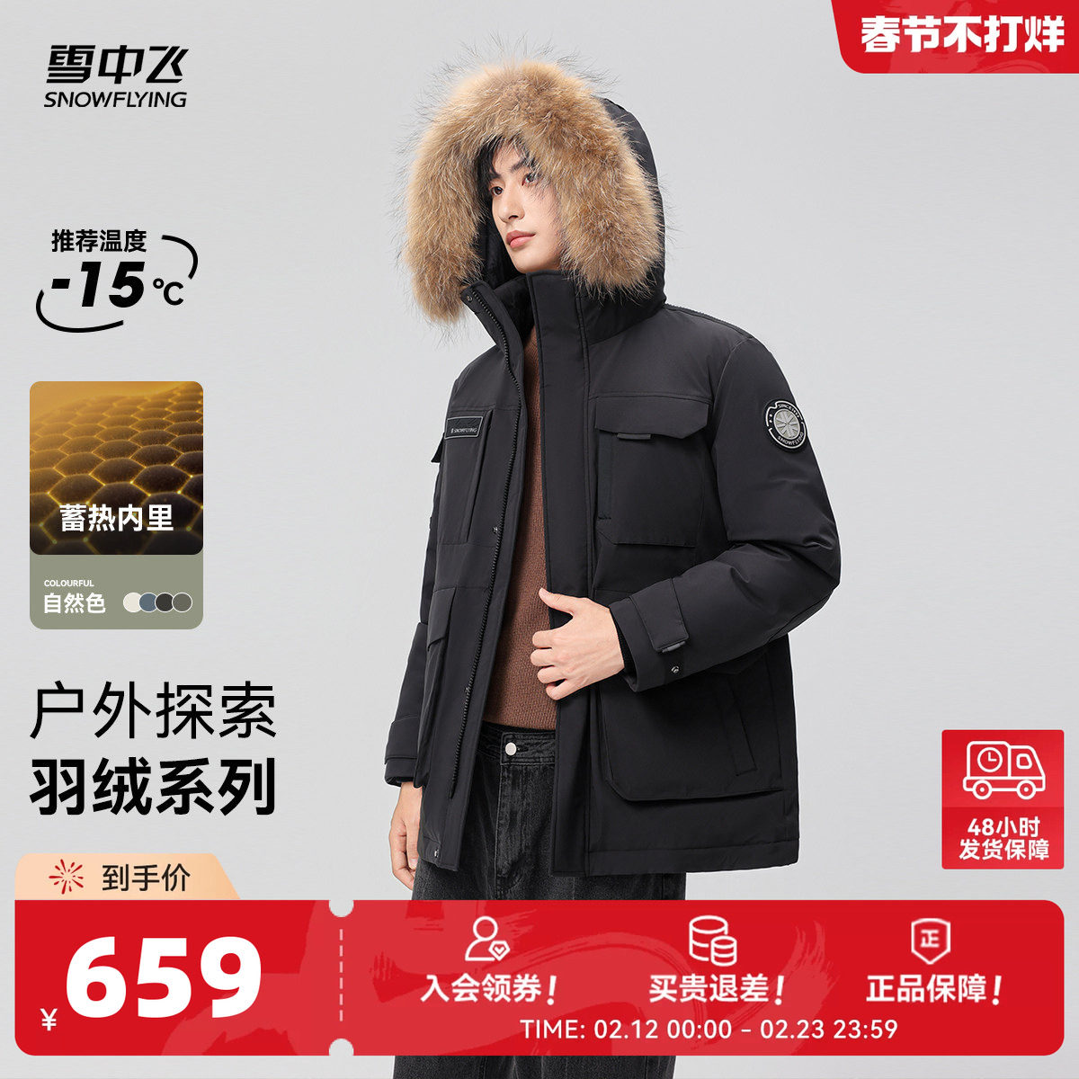 📚 【直播间更划算】雪中飞26男士短款工装派克连帽羽绒服大毛领保暖