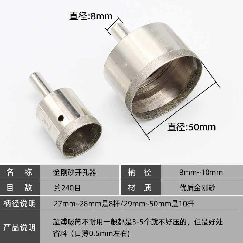 📚 27-50MM金刚砂薄口细砂吸筒戒指平安扣玻璃钻头玉石开孔器吸圆珠