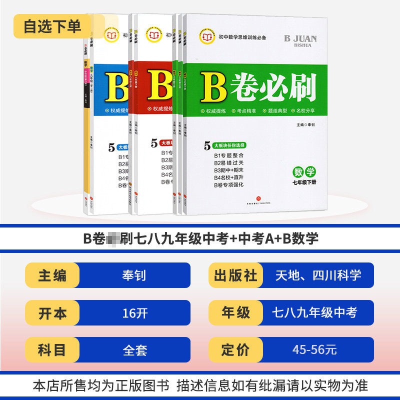 📚 B卷必刷七八九年级上下册数学北师大版BS初中七年级上册b卷必刷八下册初一初二初三必刷题同步练习册专题训练期中期末试卷科学