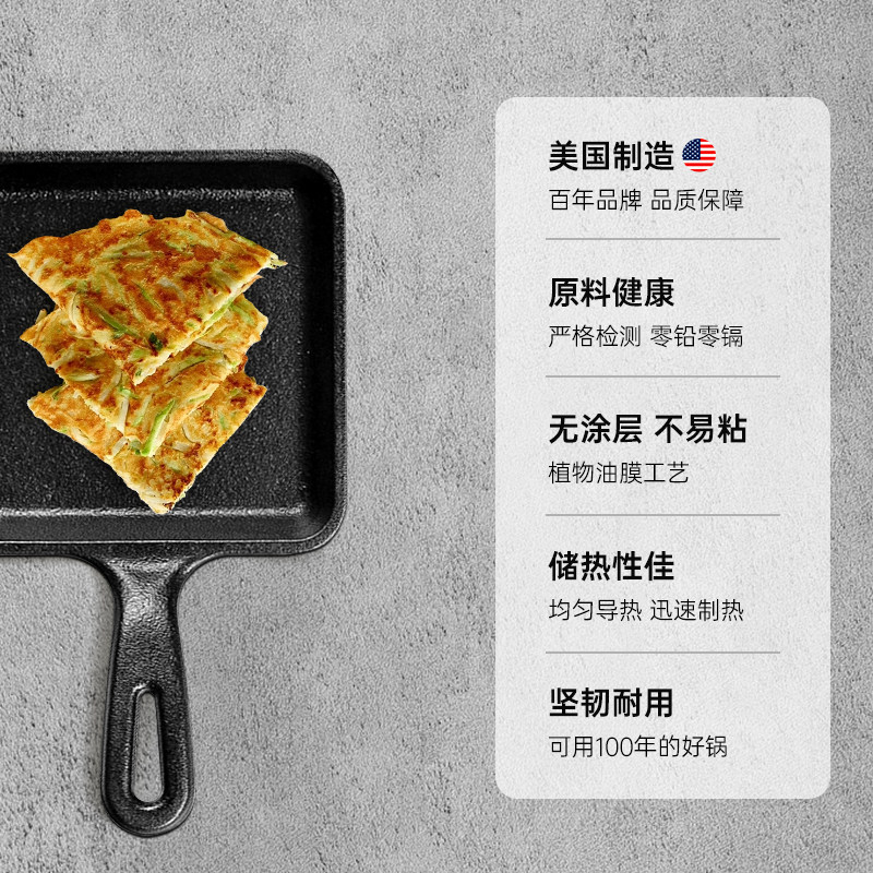 📚 Lodge美国进口铸铁平底锅早餐玉子烧锅户外露营可烤肉 L5WS3 14CM