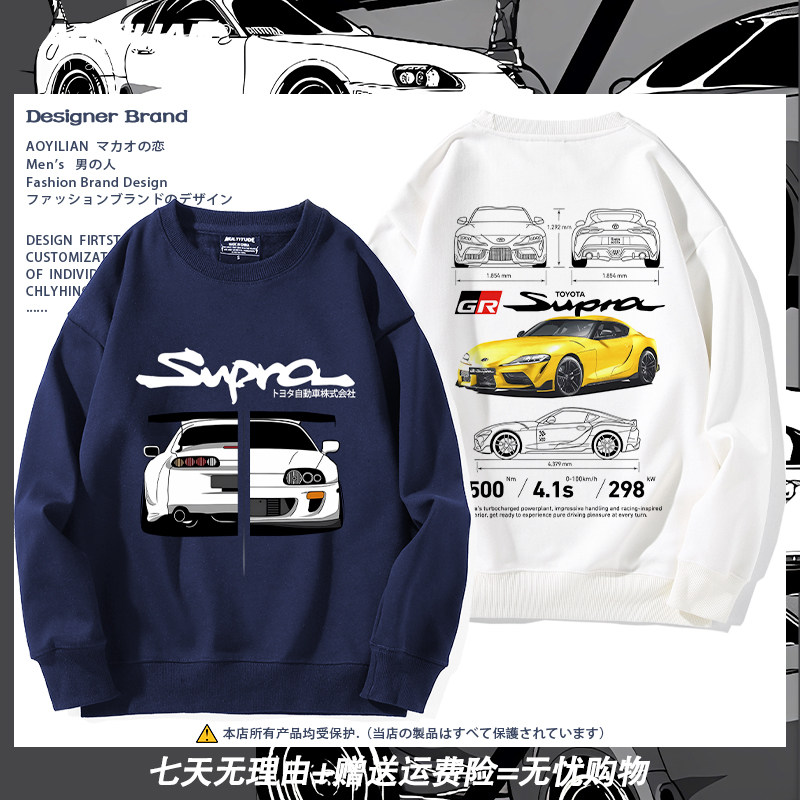 📚 丰田牛魔王SUPRA日系经典跑车改装JDM汽车圆领卫衣秋冬男女宽松潮