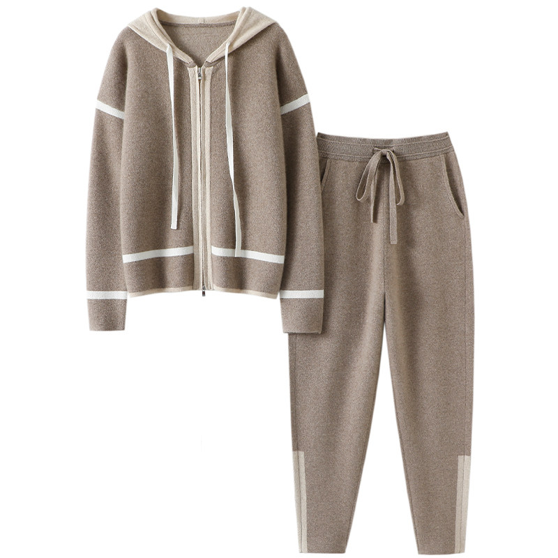 📚 一生持有!重磅加厚!100%纯山羊绒拉链帽衫毛衣小脚哈伦裤套装冬