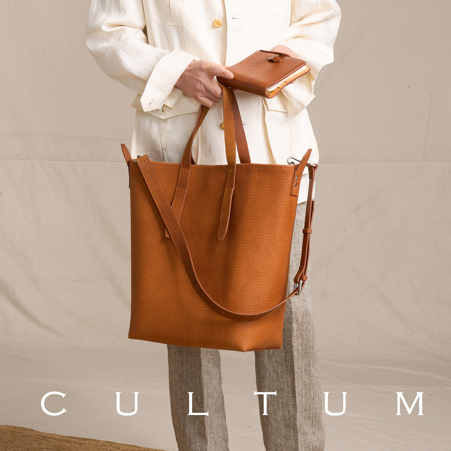 📚 【头层牛皮】CULTUM百搭一体多携席纹手提男士大容量托特包旅行包