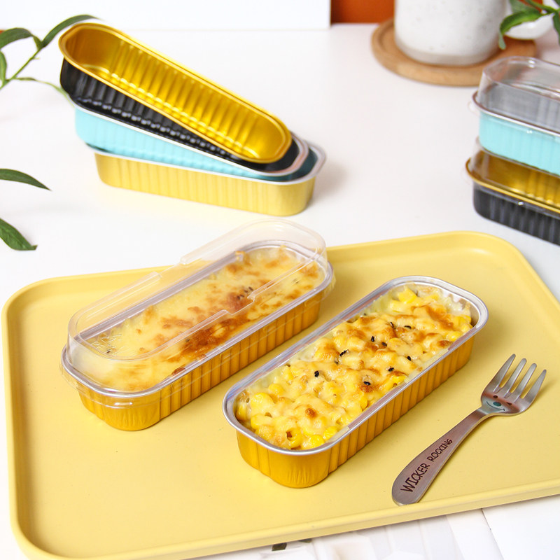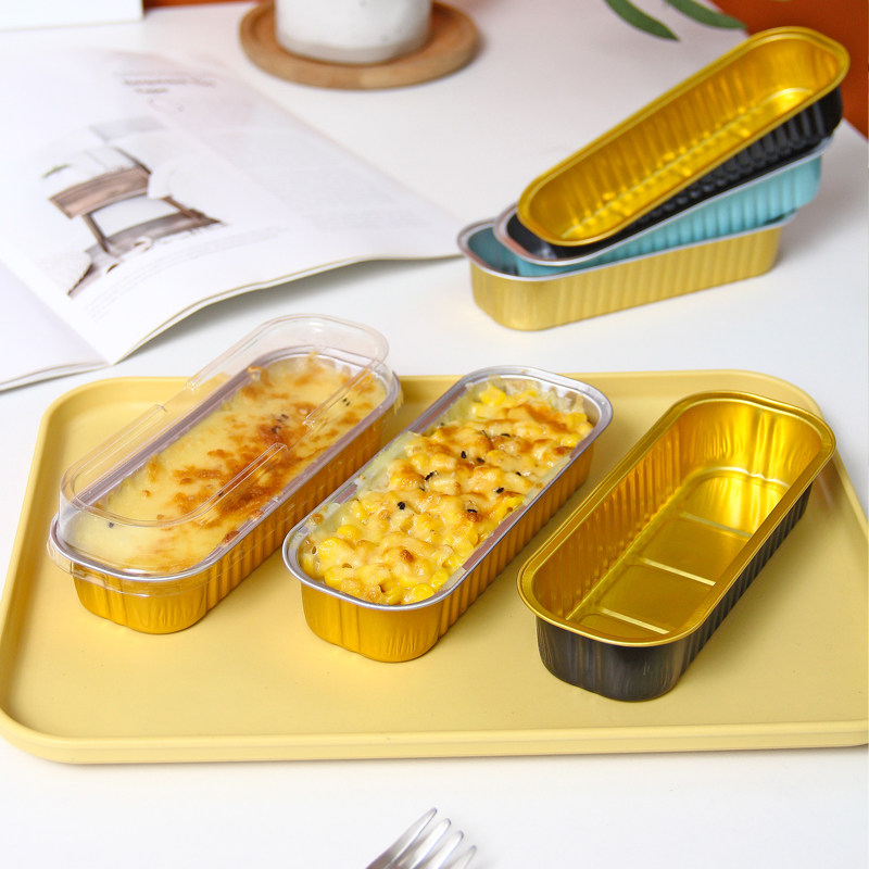 📚 芝士烤榴莲铝箔盒焗红薯芋泥玉米寿司面包长方形烘焙打包锡纸盒子