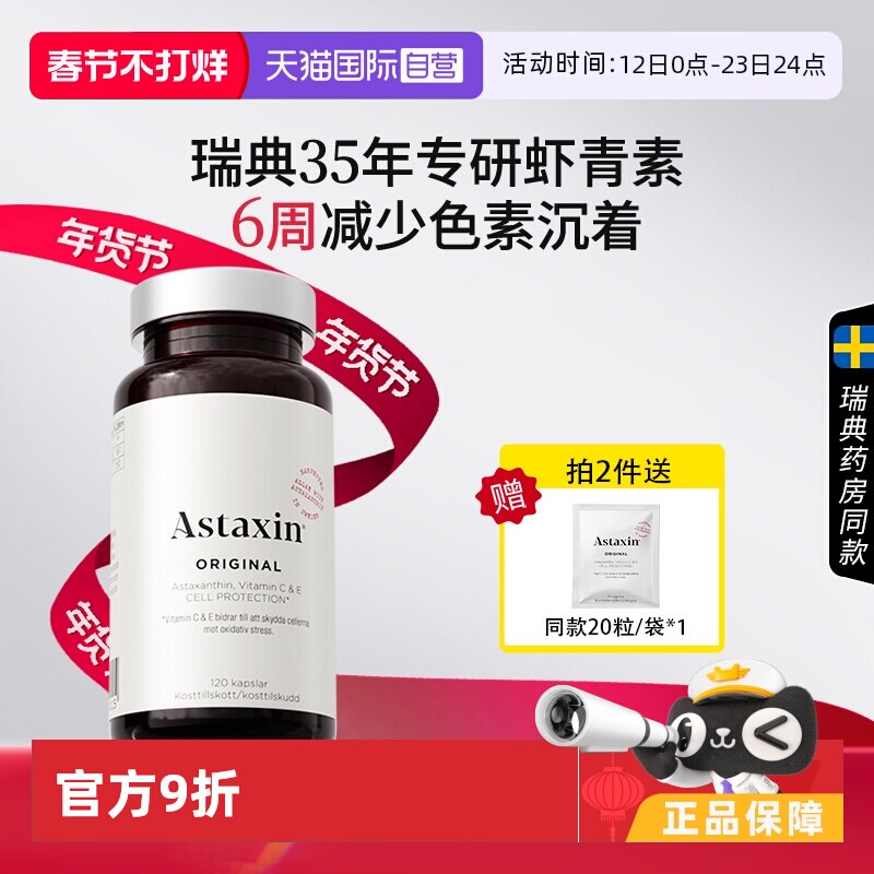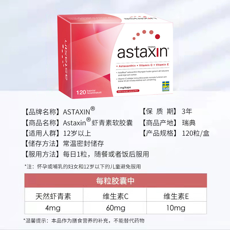 📚 【自营】瑞典进口Astaxin天然虾青素软胶囊雨生红球藻120粒